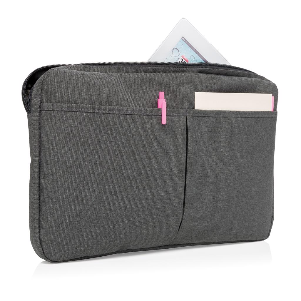 2-farbige 600D Polyester Laptophülle, welche nicht nur Platz für Ihren Laptop bietet, sondern auch Raum für praktisches Verstauen von Ladegerät, Kabel, Schlüssel, etc. PVC-frei.