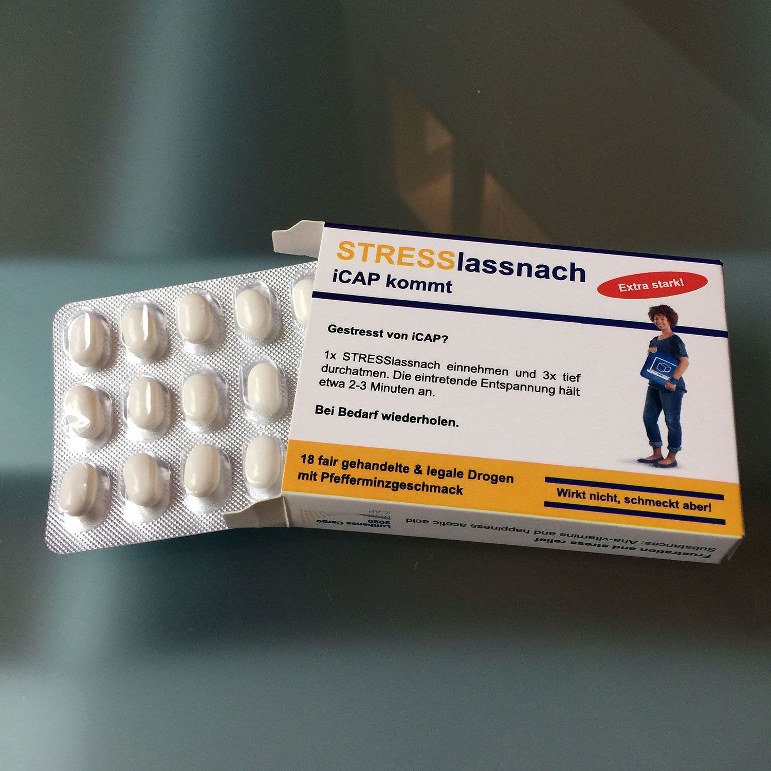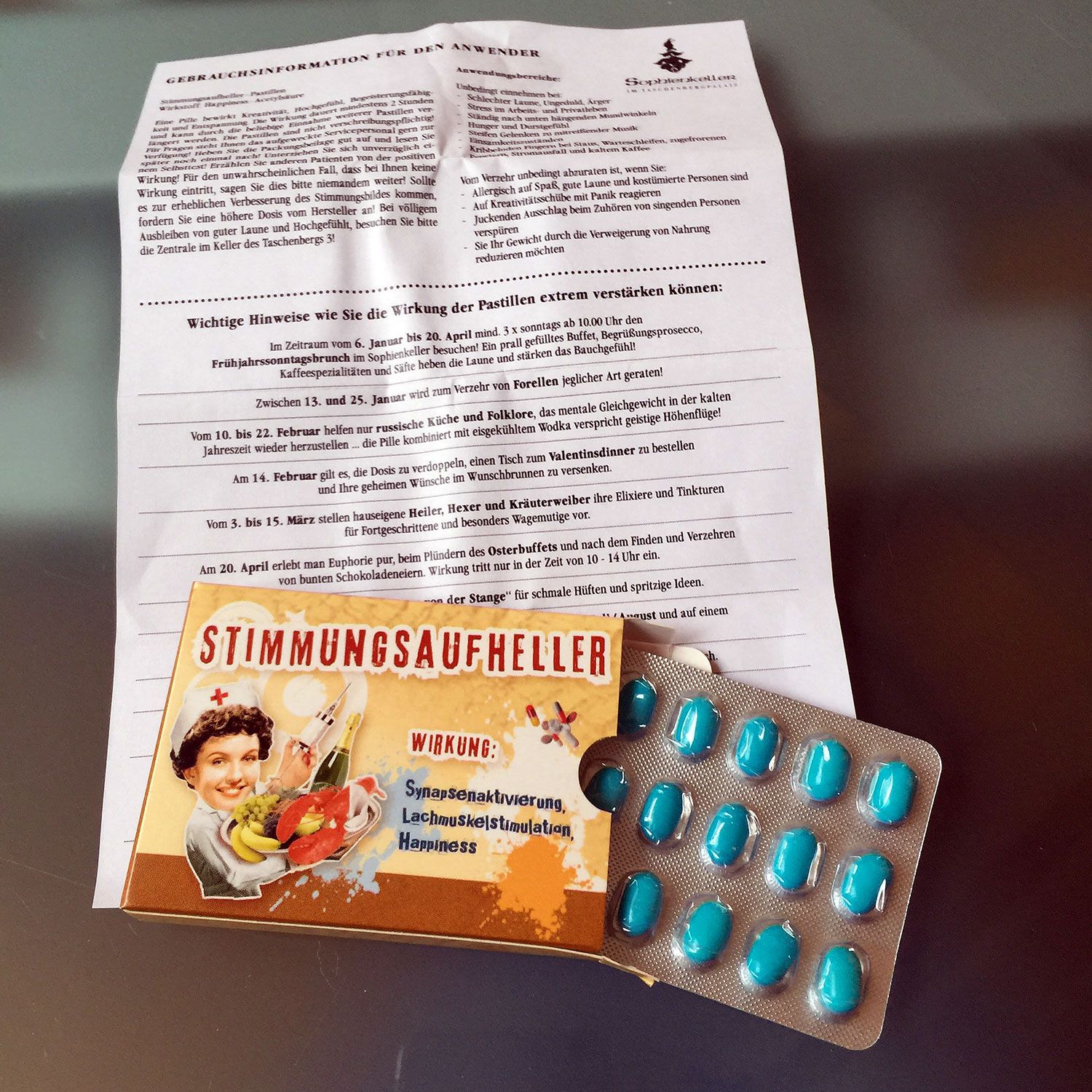 Eine ganz besondere "Medizin"! Wohlschmeckend und natürlich auch sehr werbewirksam für Ihr Unternehmen. Blister-Dragees in der Optik einer Tablettenverpackung.