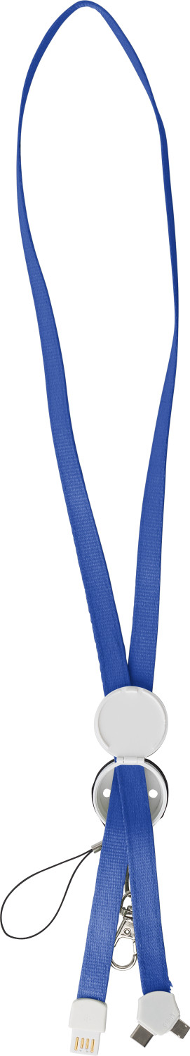 Lanyard aus Kunststoff mit USB-Lader, Karabiner und Handyhalter. Passend für USB, USB-C und Micro-USB.