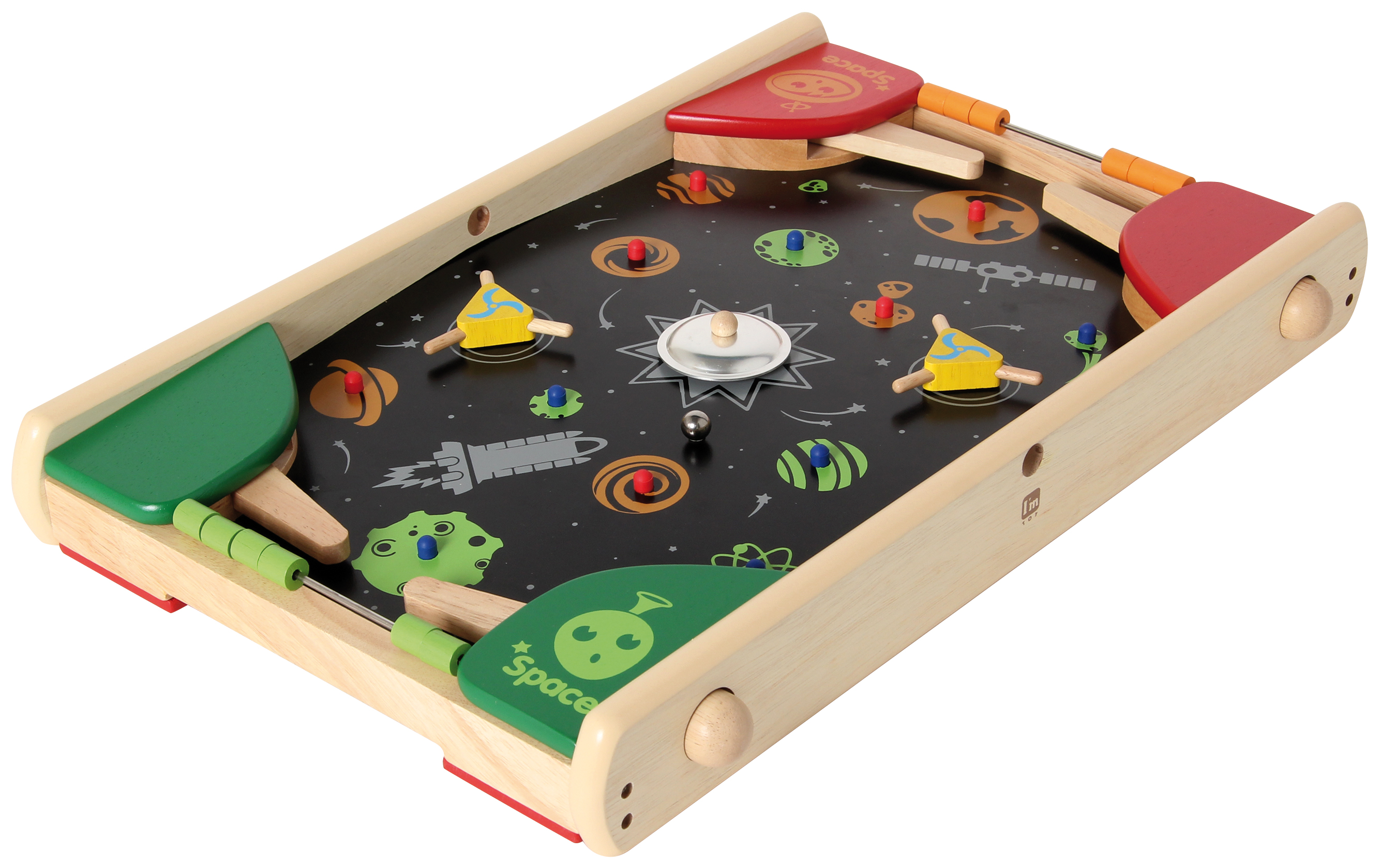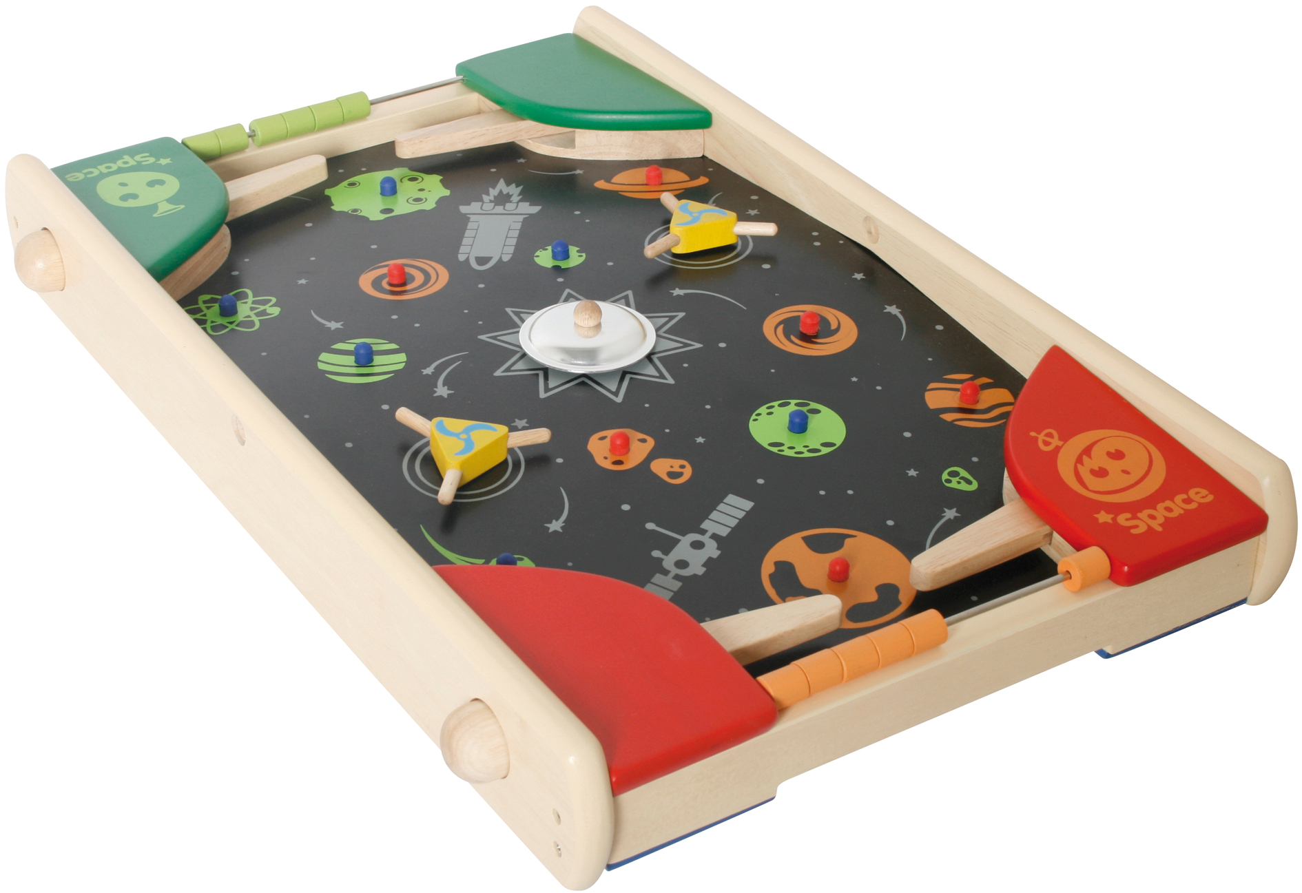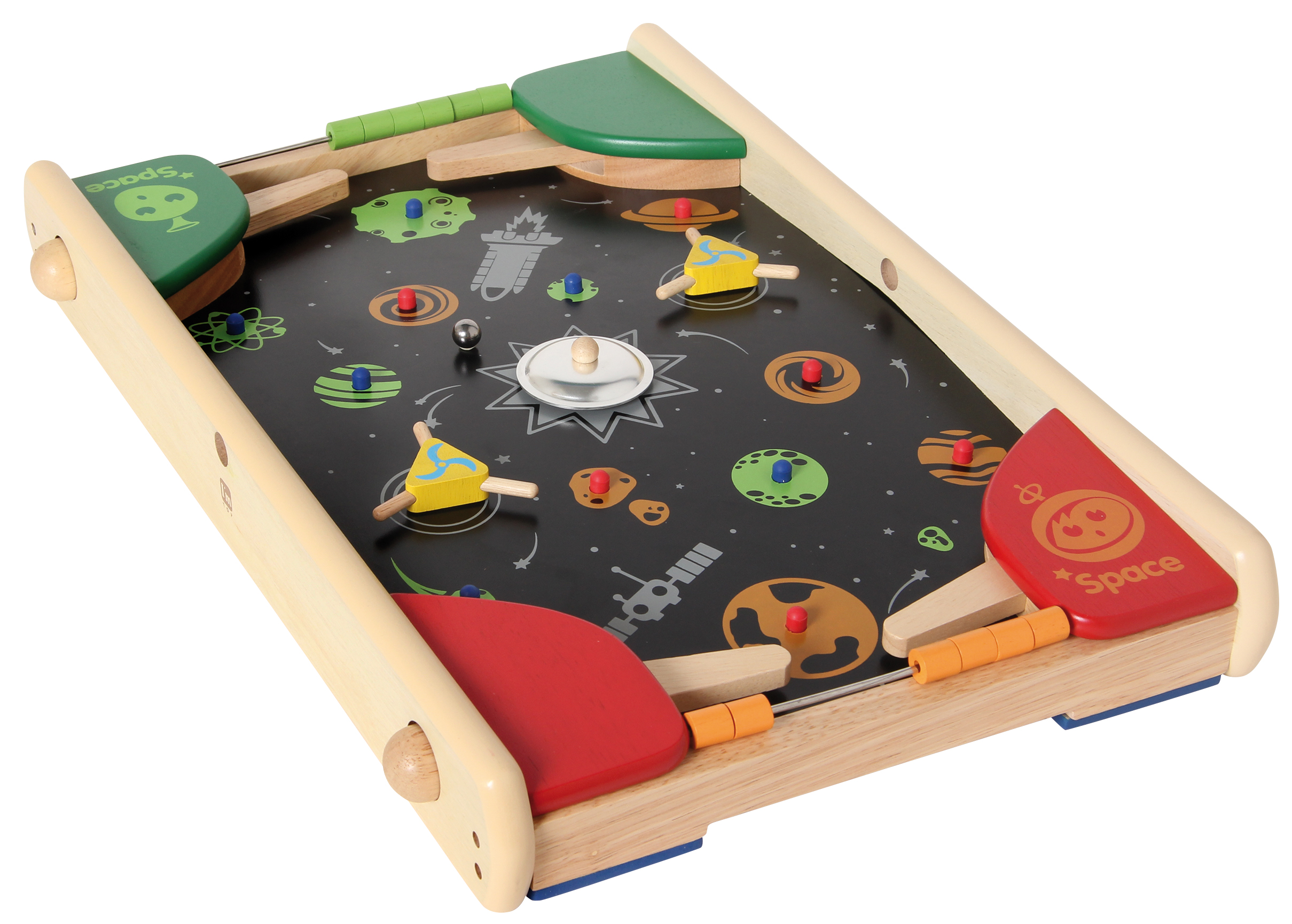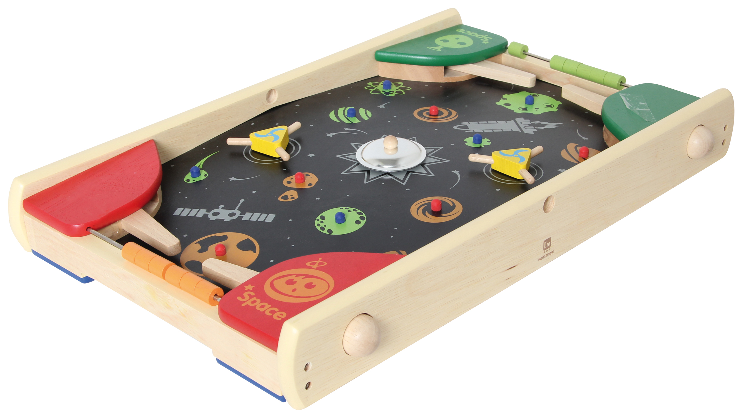 Zwei Spielideen in einem: Flipper und Hockey. Das Spiel besteht aus einem massiven, hölzernen Spielbrett (beidseitig bespielbar!), einem Ball, einem Puck, zwei Punkte-Zählern, zwei Hand-Kickern.