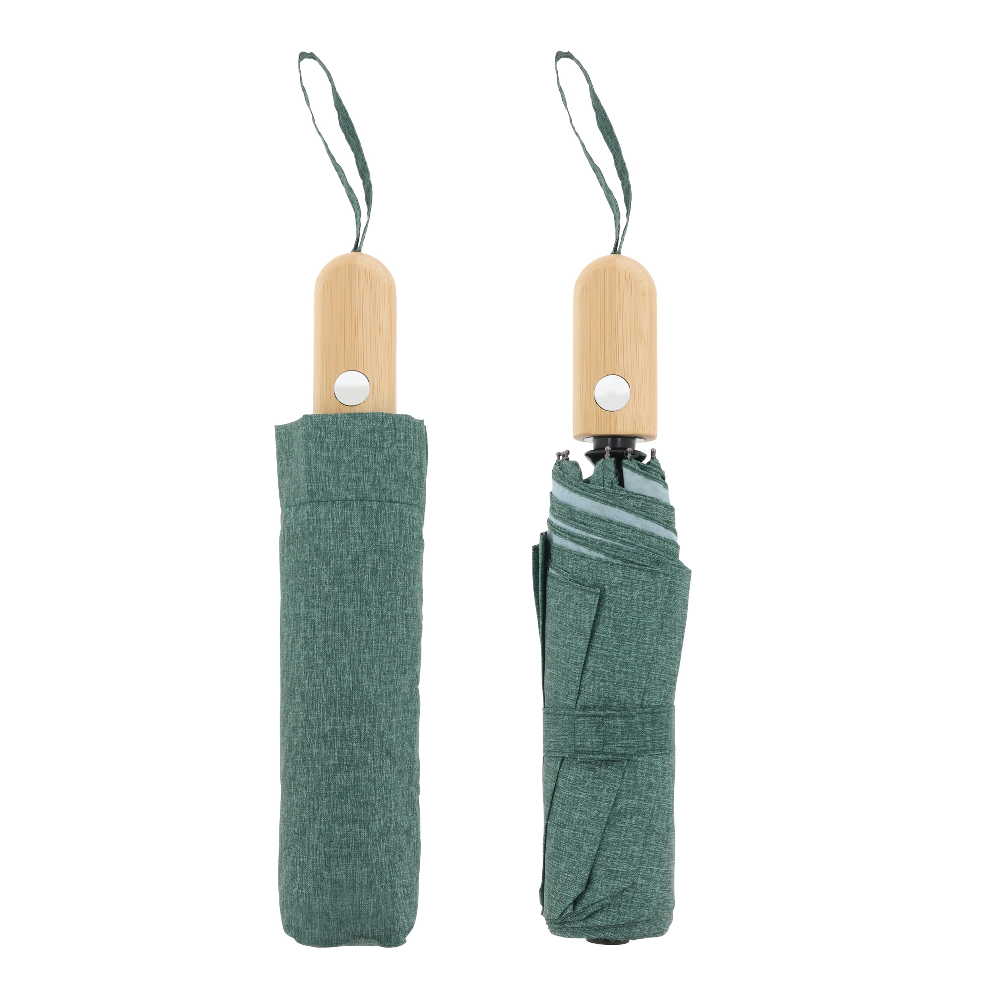 Regenschirm aus R-PET-Material mit einem stilvollen Echtholzgriff. Durch das Fiberglas-Gestänge ist der Regenschirm winddicht und er lässt sich mit einem Knopfdruck automatisch öffnen. Das melierte Material verleiht dem Modell einen luxuriösen Look. (Volltonfarbe schwarz).