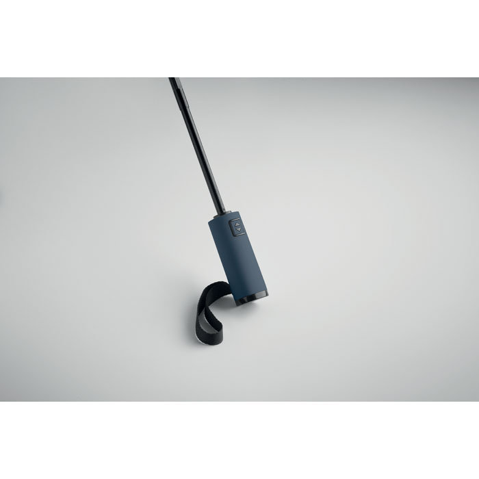 23'' Windproof Regenschirm aus 190T RPET Pongee. 3-fach faltbar. Schwarz beschichtetes Gestell, Stangen aus Fiberglas, gummierter ABS-Griff. Inkl. passende Hülle. Automatische Öffnung und Schließung.
