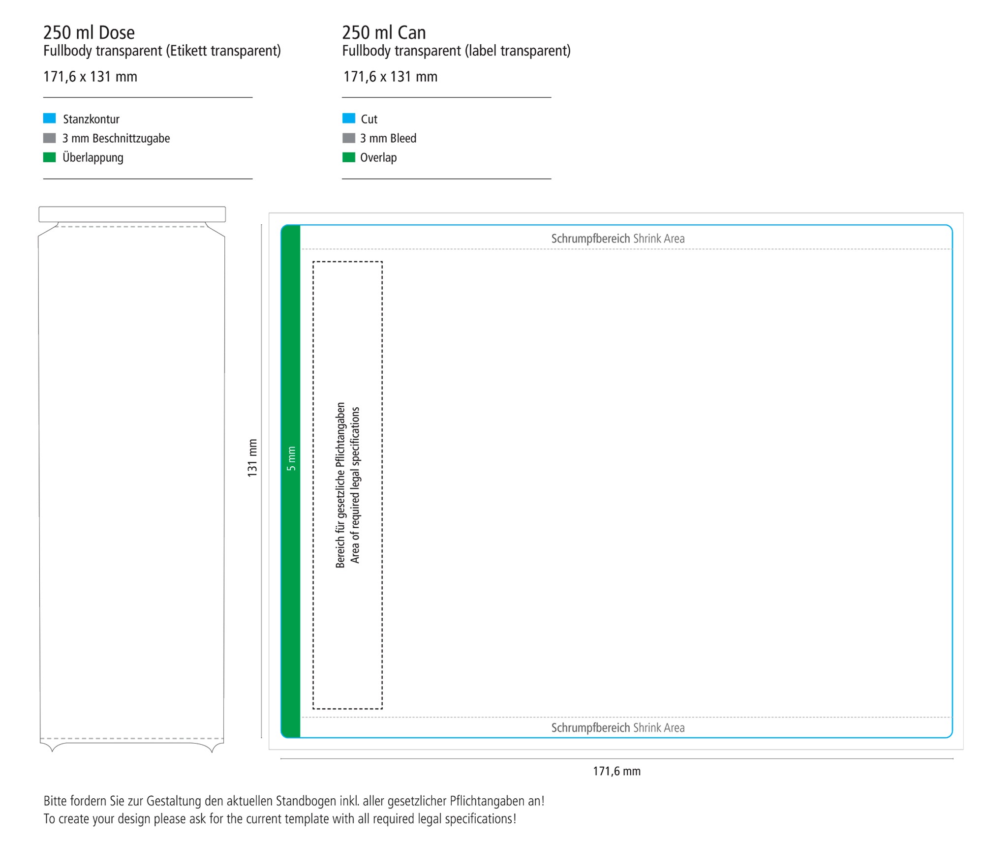 Veredelung: Etikett Fullbody hochglänzend (transparent), CMYK + Weiß + Pfand, 172,0 x 128,0 mm
