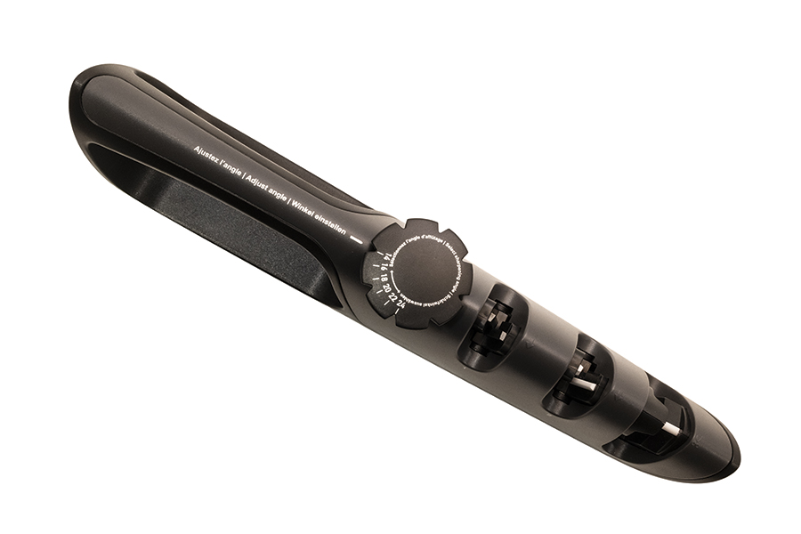 Ergonomischer ABS-Griff. Schärfwinkel in 6 verschiedenen Positionen von 14° bis 24° einstellbar. 2 Schärfschlitze für Messer, der erste aus Wolfram für stumpfe oder beschädigte Messer, der zweite aus Keramik für die regelmäßige Wartung. Einzelner Keramikschlitz für Scheren. Rutschfester Silikonboden. Die Vorteile in Kürze: - 2 einstellbare Schärfeschlitze je nach Verwendungszweck. - Keramische Schärfklingen für perfektes Schärfen und eine längere Lebensdauer. - Ergonomischer Griff für besseren Halt beim Schärfen. - Rutschfester Silikonboden für optimale Sicherheit.