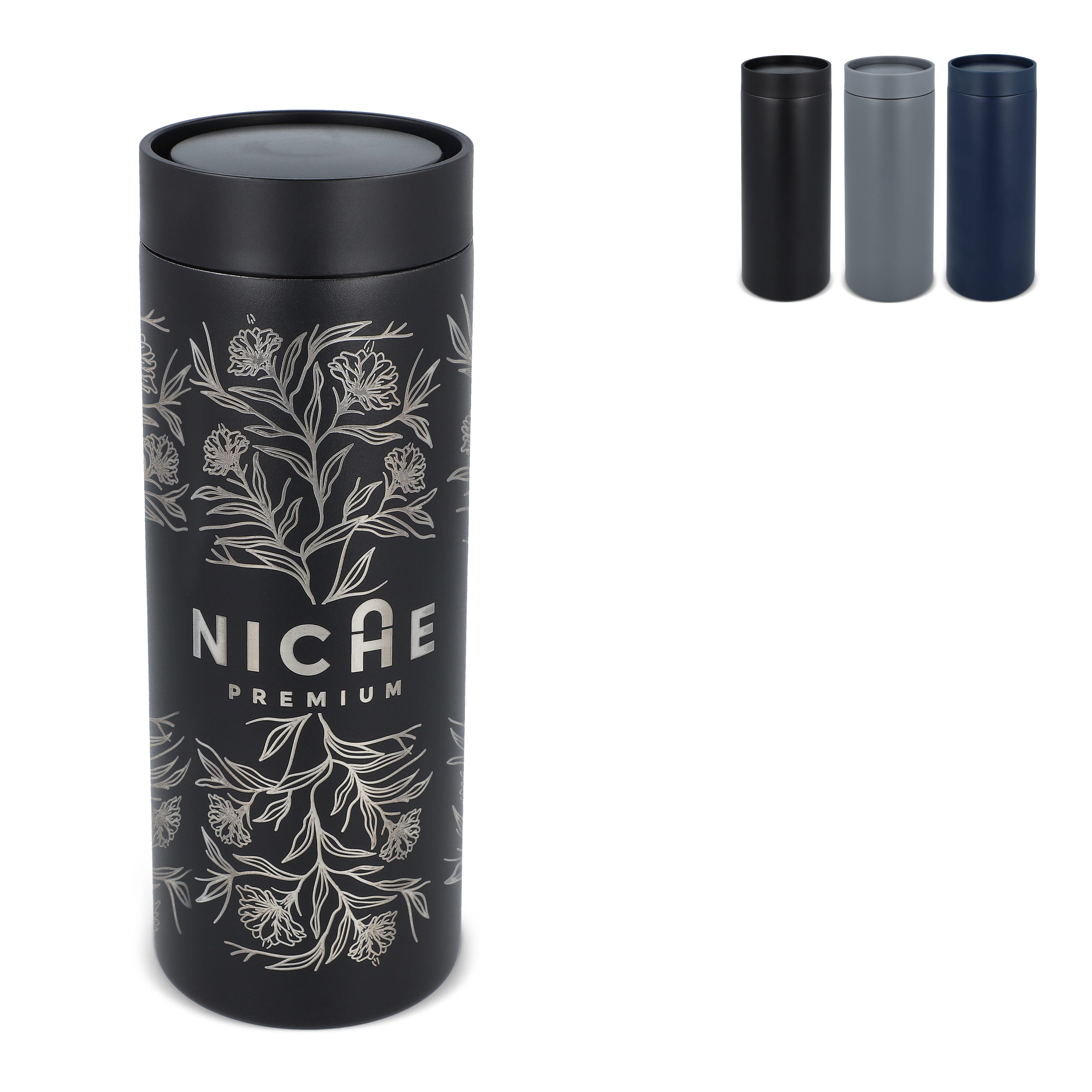 Moderner Thermobecher aus recyceltem Edelstahl (400 ml) mit einem cleveren Druckknopfdeckel und einer 360-Grad-Trinkmöglichkeit. Lasergravierte Logos mit Chromeffekt oder digitale Hochglanzlogos mit dezentem Effekt. Jedes Produkt ist in einer Geschenkbox verpackt.
