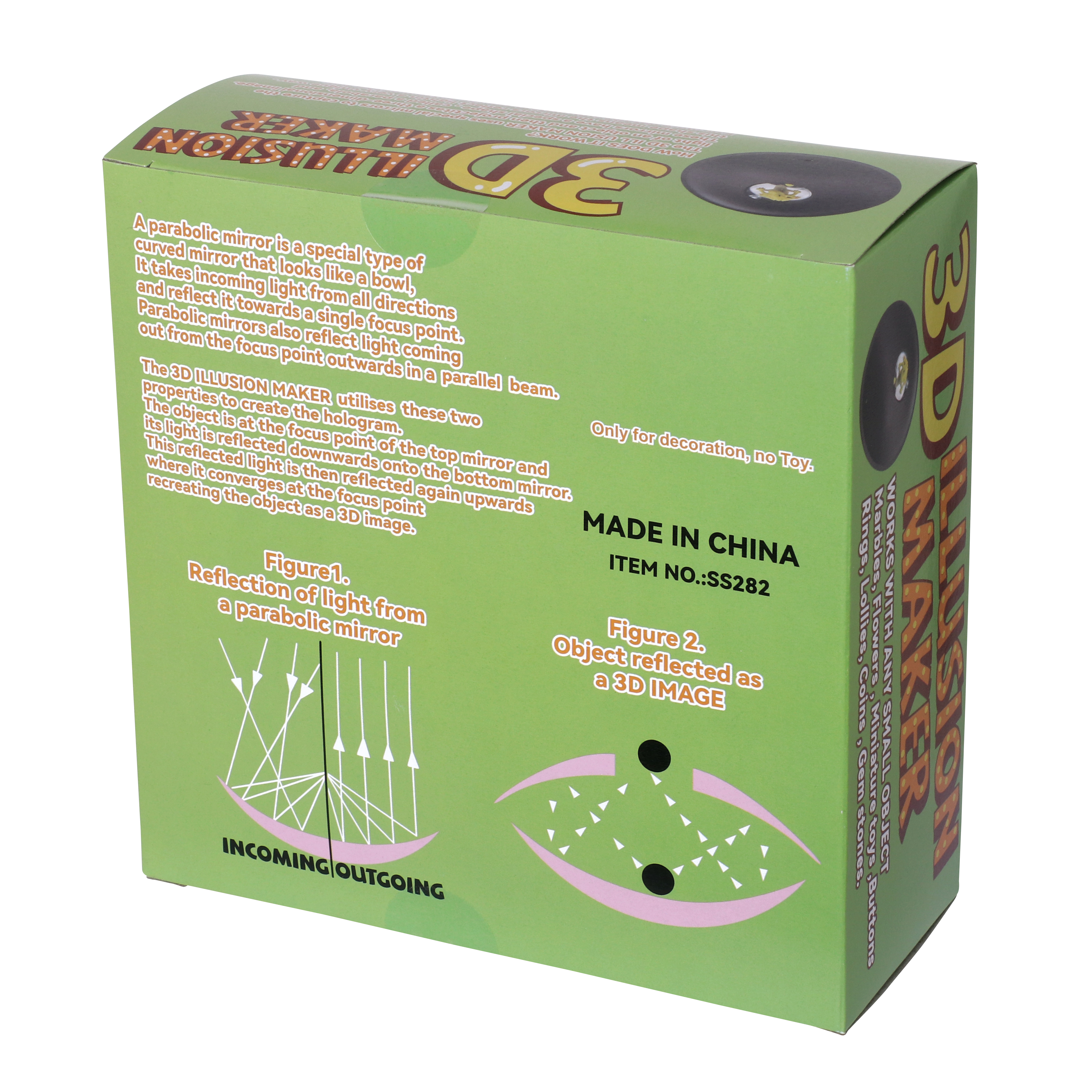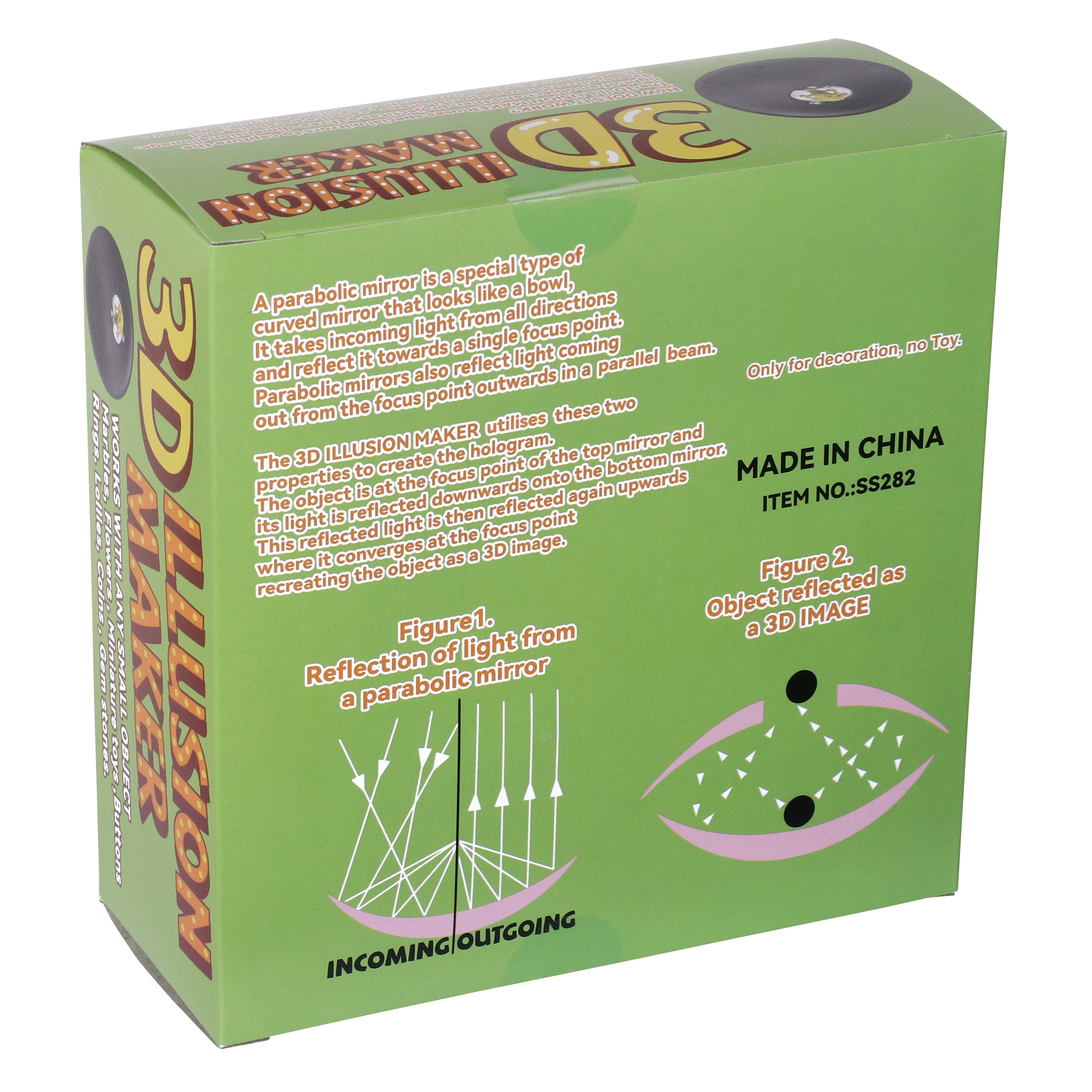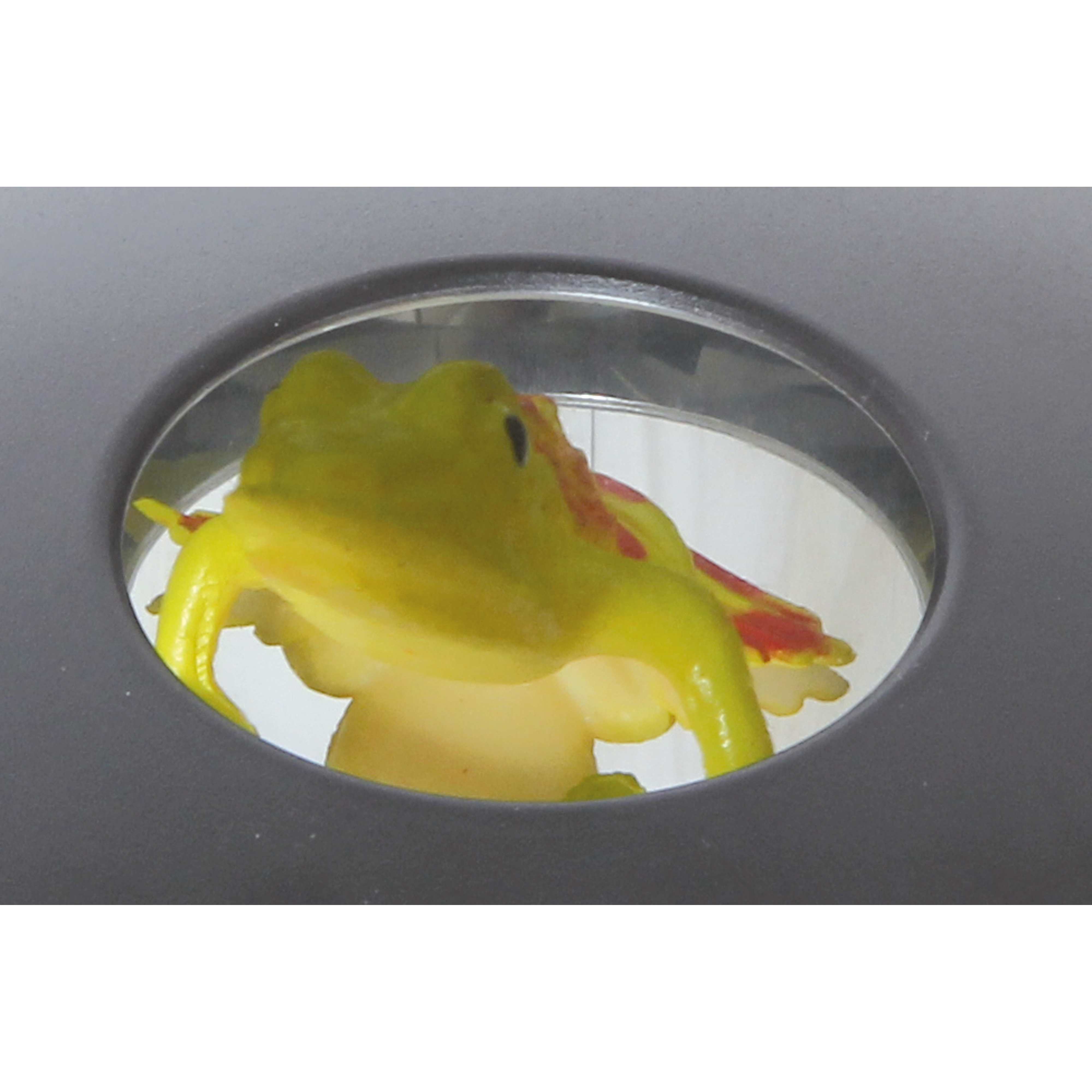 Der Frosch sieht real aus, aber man kann ihn nicht berühren! Warum? Im Innern des Miraskops liegen sich zwei parabolische Spiegel gegenüber und erzeugen dieses 3-D-Hologramm.