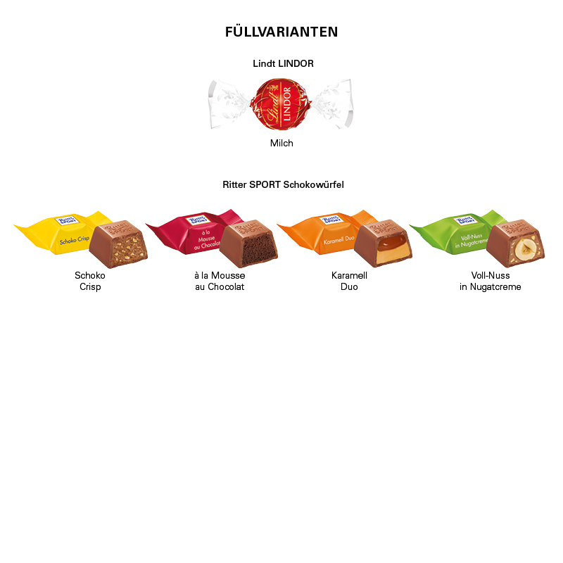 4 Ritter SPORT Schokowürfel oder 1 Beutel mit 3 Lindt LINDOR Milchkugeln