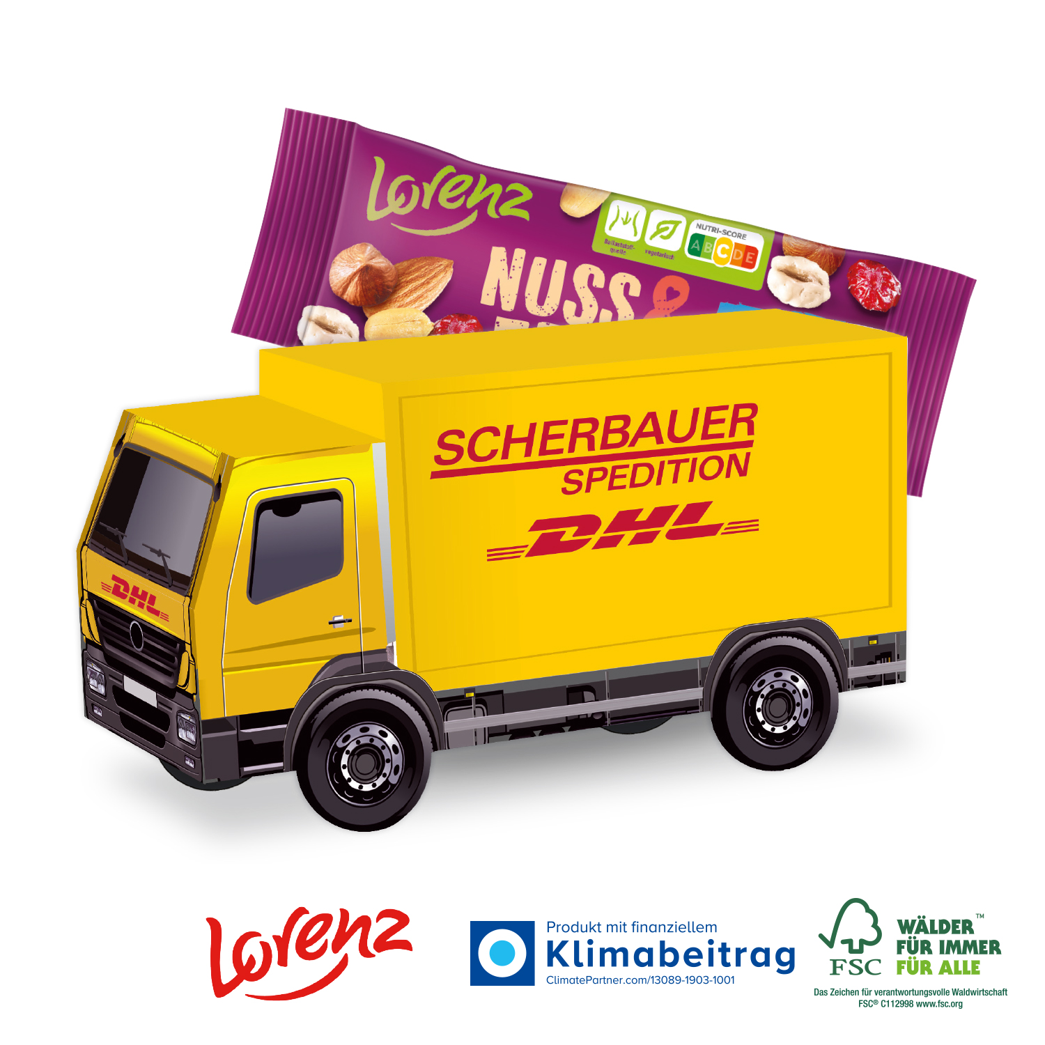 Sympathische Kundenbindung zum attraktiven Preis! Ihr individuell bedruckbares Präsent als "LKW" oder "Container" mit vielen Gestaltungsmöglichkeiten. Wählen Sie aus verschiedenen Varianten feinster Markenfüllungen