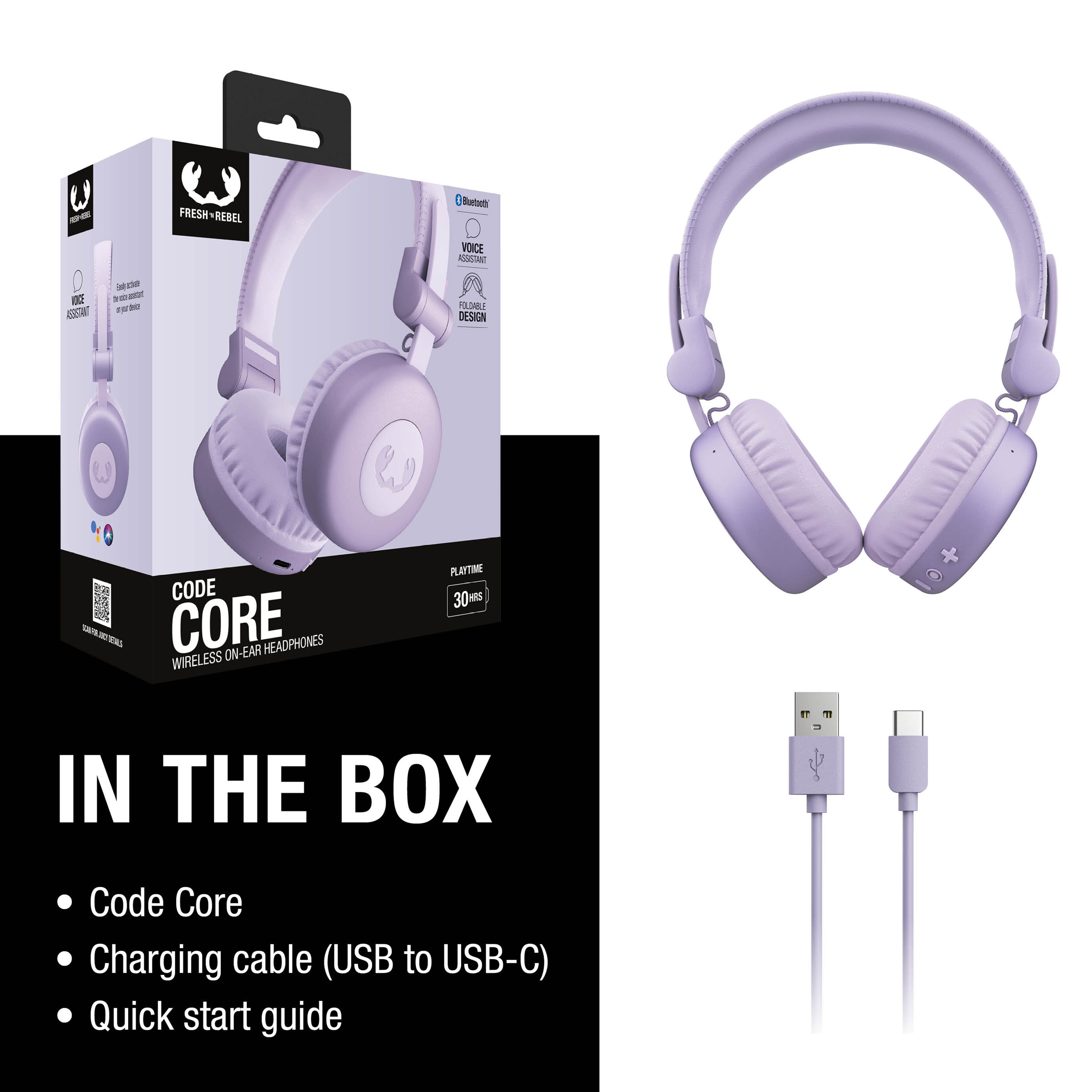 Die faltbaren Code Core sind kabellose On-Ear-Kopfhörer mit einem altmodischen Look für 30 Stunden Wiedergabezeit mit deinen Lieblingssongs Tag für Tag. Nutze die Tasten an den Seiten der abgerundeten Ohrmuscheln, um deine Musik oder Anrufe drahtlos zu steuern und aktiviere den Sprachassistenten auf deinem Gerät für eine freihändige Bedienung.