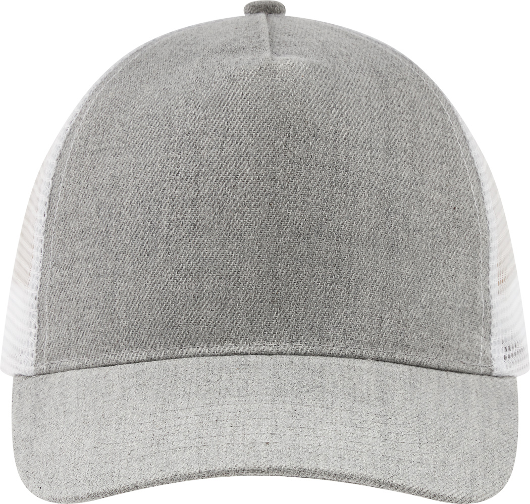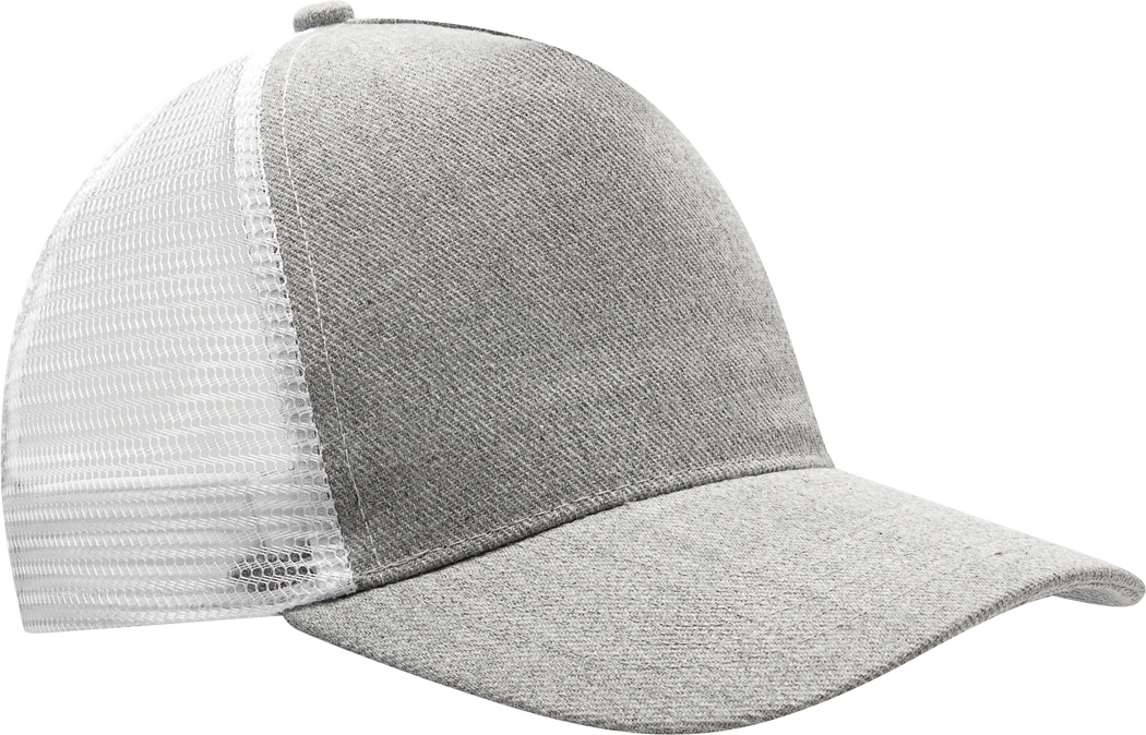 5-Panel-Baseball-Cap CASUAL FIT, 2-farbig: verstärktes, meliertes Frontsegment, übrige Segmente aus Netzstoff, Knopf, größenverstellbarer, doppelreihiger Kunststoffverschluss am Hinterkopf
