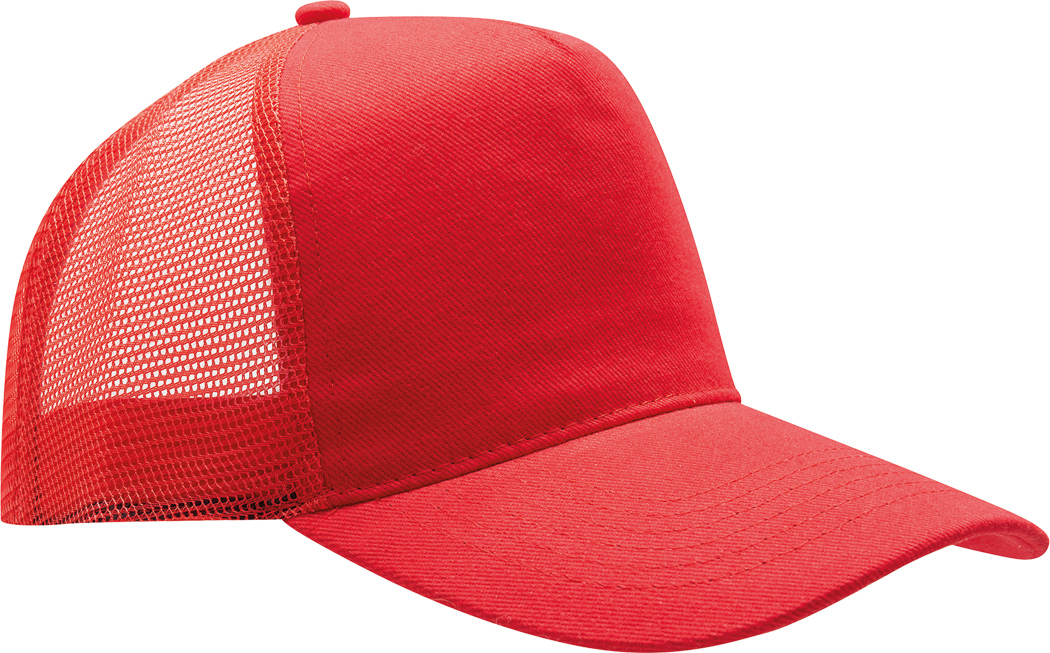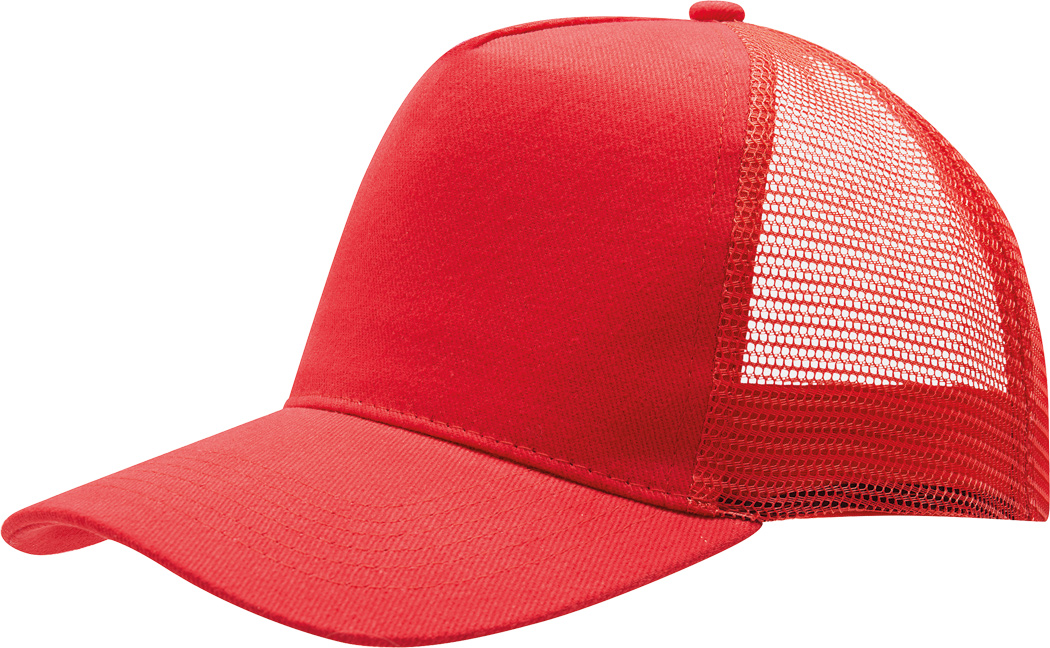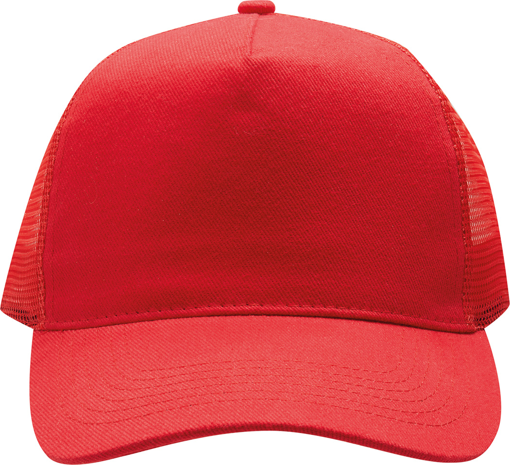 5-Panel-Cap FASTBALL: verstärktes Frontsegment aus gebürsteter Baumwolle, übrige Segmente aus Netzstoff, Knopf, größenverstellbarer, doppelreihiger Kunststoffverschluss am Hinterkopf