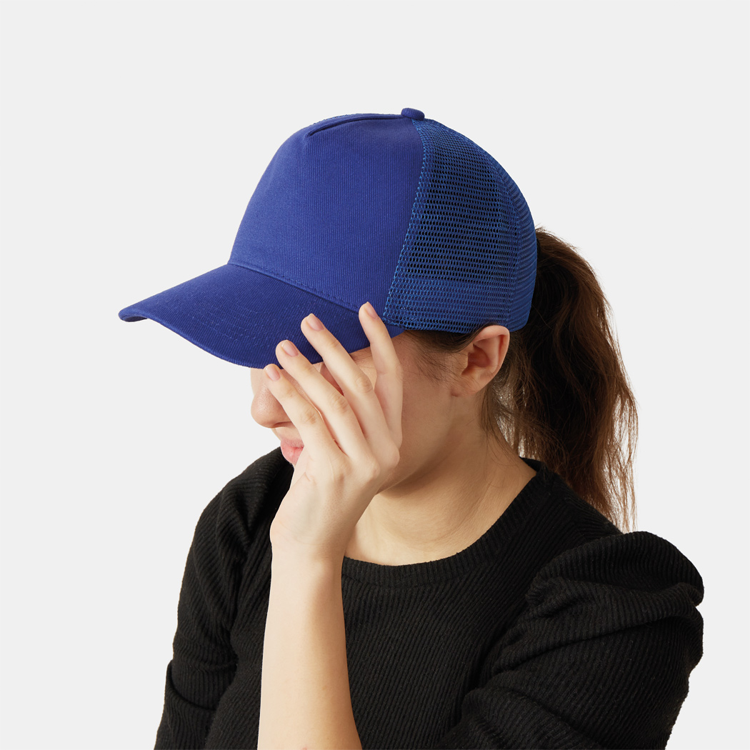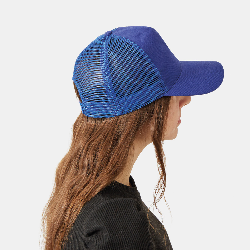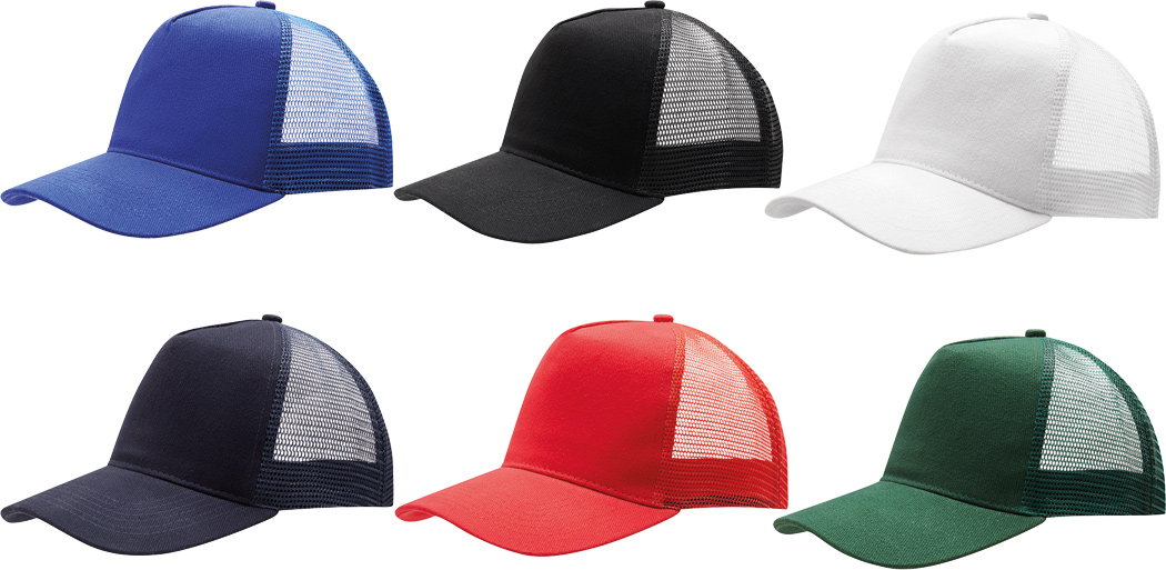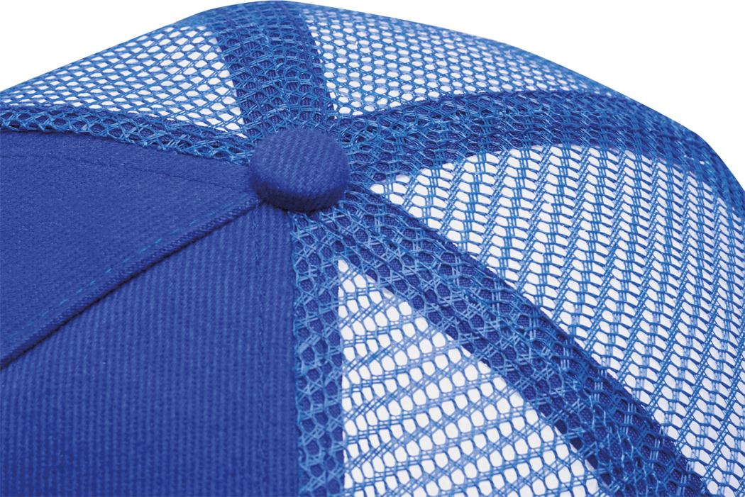 5-Panel-Cap FASTBALL: verstärktes Frontsegment aus gebürsteter Baumwolle, übrige Segmente aus Netzstoff, Knopf, größenverstellbarer, doppelreihiger Kunststoffverschluss am Hinterkopf
