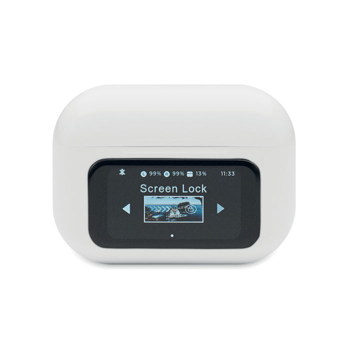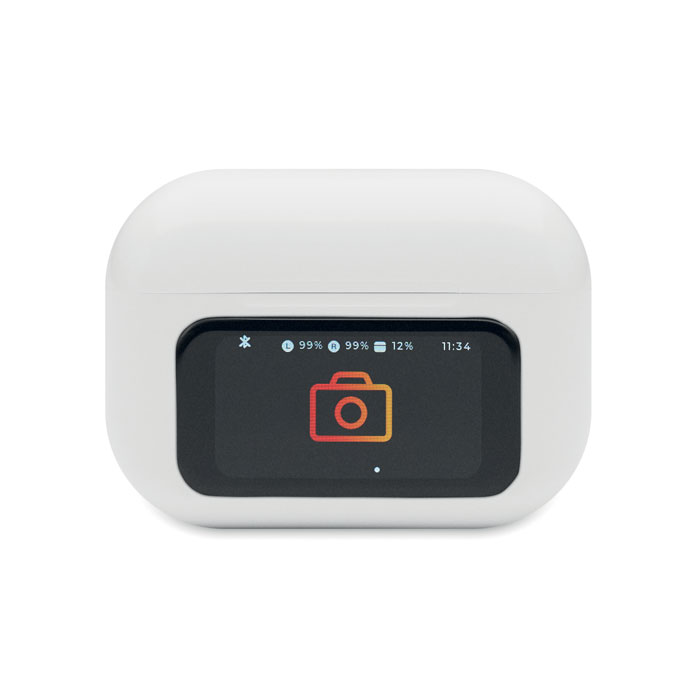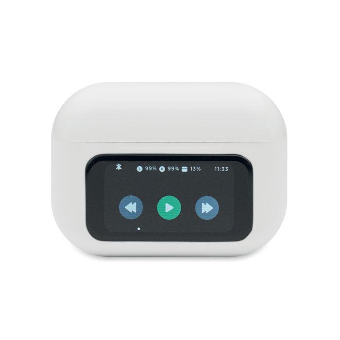 5.0 TWS True Wireless Stereo Ohrhörer-Set mit Mikrofon. ABS. Inkl. eingebauter 30 mAh Batterie. Mit ANC (Active Noise Cancellation) und ENC (Environmental Noise Cancellation) sowie Touchscreen Control & Display. Inkl. 230 mAh-Ladebox.