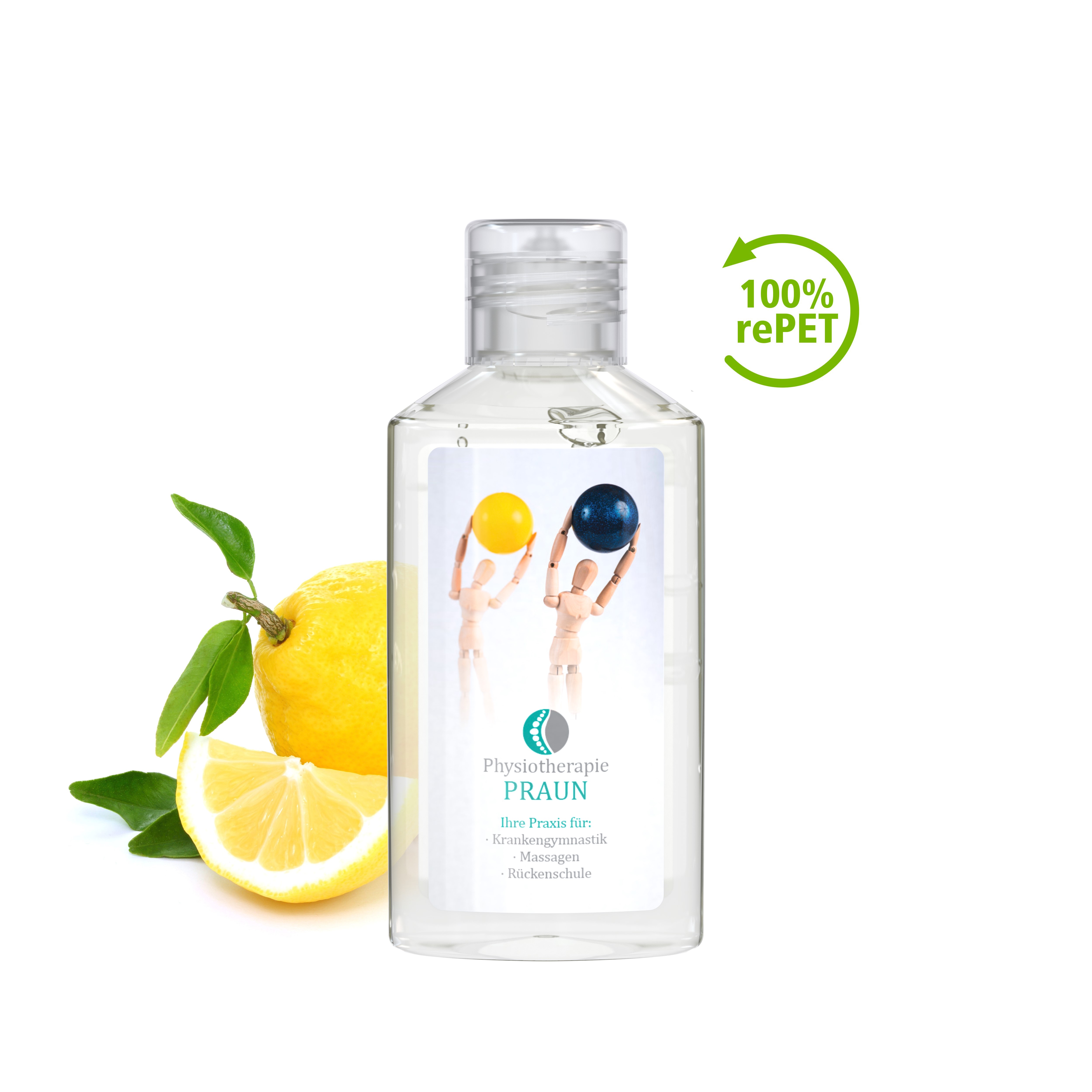 50 ml Flasche mit Klappdeckel. Flasche hergestellt aus 100% recyceltem PET, transparent mit leichter R-PET-Färbung. Klappdeckel "weiß" aus recyceltem PP, zufällig ausgerichtet. Nachfüllbar. Hygiene ist für jedermann Thema: Das alkoholische Handreinigungsgel ist der ideale Begleiter im Alltag. Prompt und einfach ohne Wasser anwendbar: Die Hände fühlen sich sofort sauber und gepflegt an. • Vegan • pH-hautneutral • Ohne Parabene • Ohne Konservierungsstoffe • Dermatologisch getestet "Sehr gut hautverträglich" • Hergestellt in Deutschland. Dekoration: Body Label: Etikett PE (weiß) auf Vorder- und Rückseite, Druck 4c CMYK. Füllung: 50ml