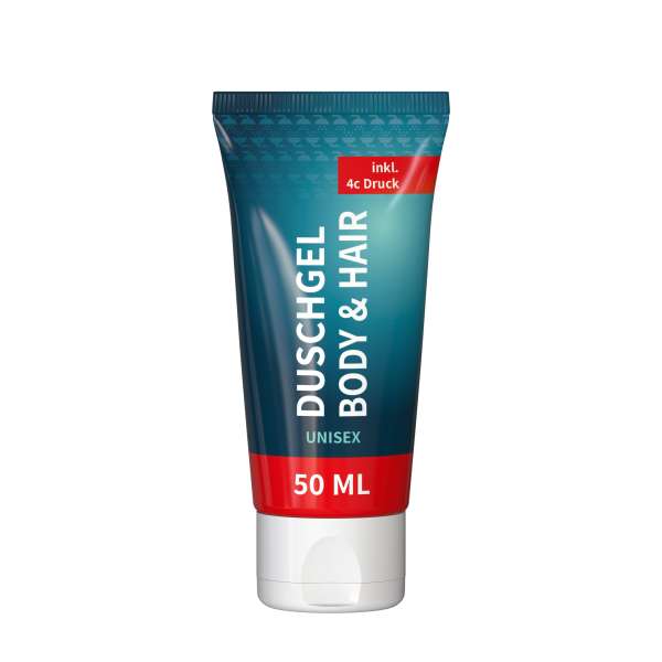 Duschgel Ingwer-Limette, 50 ml Tube (weiß) mit Klappdeckel. Das Body & Hair Duschgel mit dem Mix aus Ingwer und Limette sorgt mit seinem spritzigen Duft für Frische über den ganzen Tag und macht das Duschen zum Erlebnis! Es entsteht ein angenehmer Schaum, der Haut und Haare reinigt und zugleich pflegt. • Vegan • pH-hautneutral • Ohne Parabene • Ohne Konservierungsstoffe • Dermatologisch getestet "Sehr gut hautverträglich" • Hergestellt in Deutschland FullbodyPrint: Vollflächige 360° Bedruckung der gesamten Tube inklusive Siegelnaht. Der Druck erfolgt direkt auf die Tube in atemberaubender 4c Fotoqualität (CMYK). Keine extra Druckkosten pro Stück: der Druck auf die Tube ist im Preis bereits inbegriffen. Füllung: 50ml