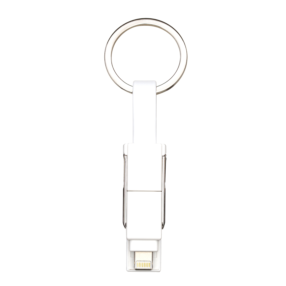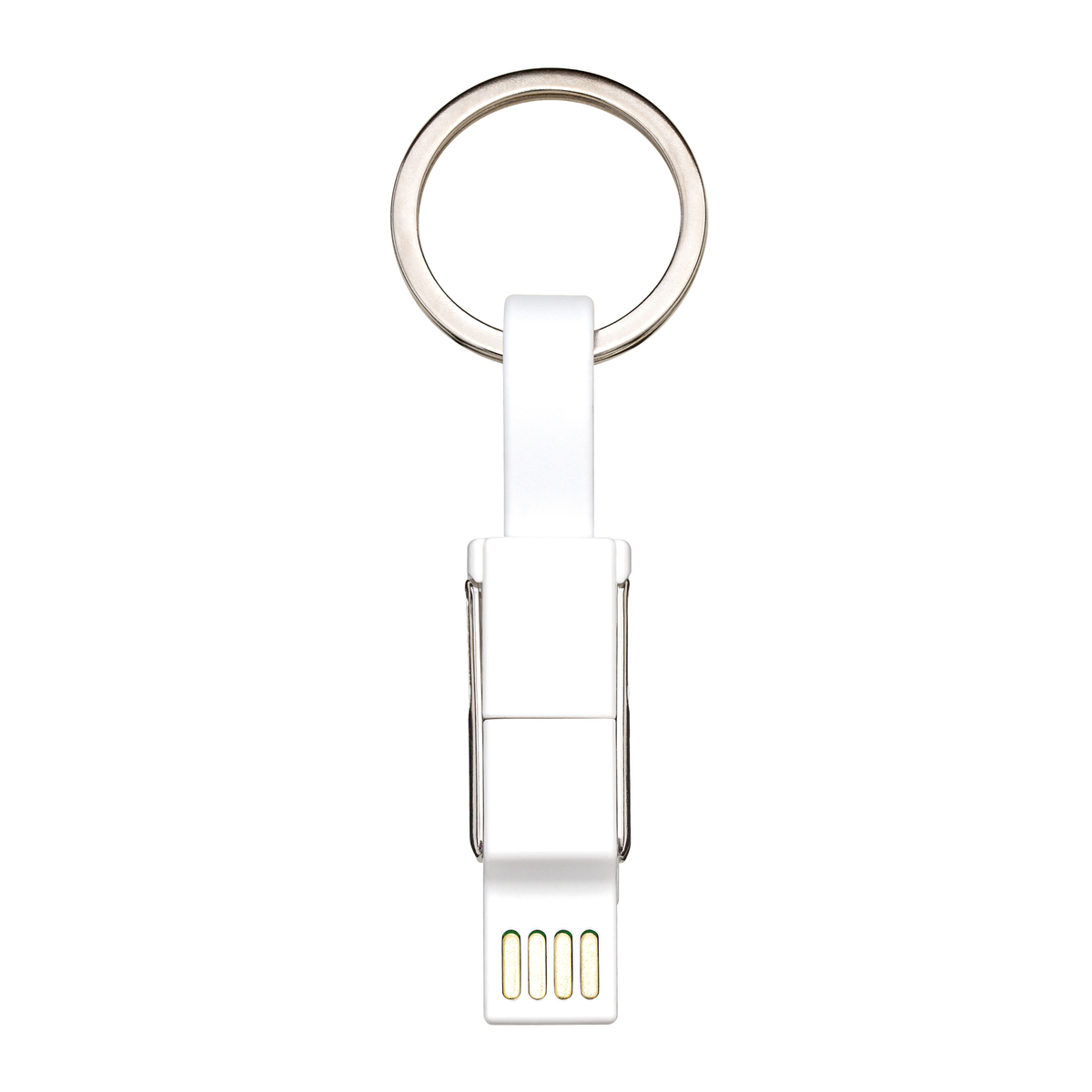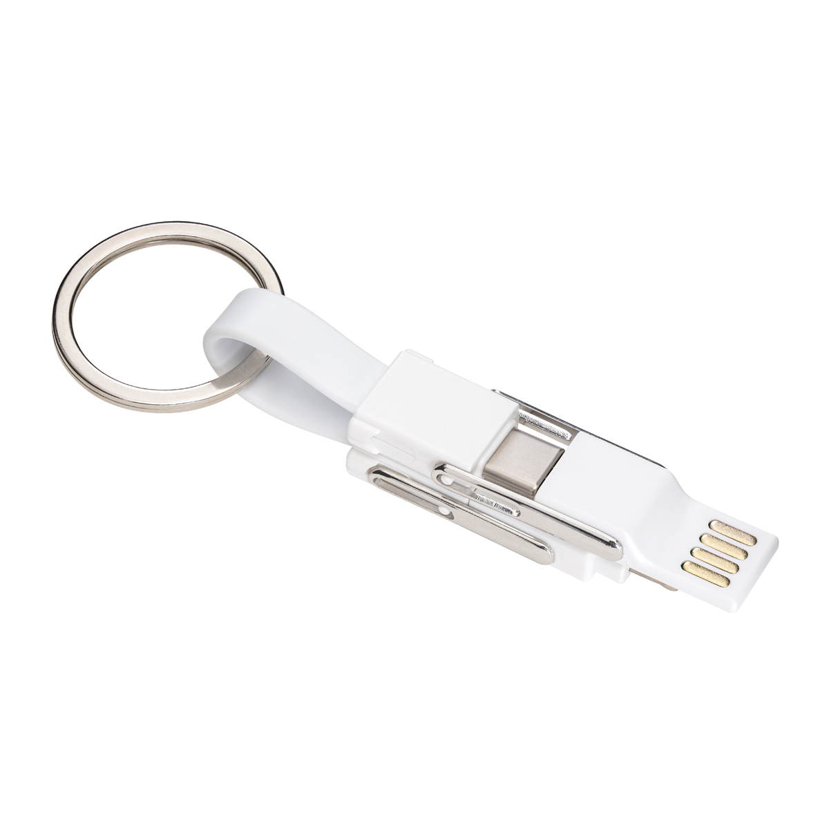 Das 6-in-1 Ladekabel REEVES-MIXCO III ist ein idealer Gefährte für unterwegs, das in Schwarz oder Weiß erhältlich ist. Es vereint mehrere Anschlüsse, die eine hohe Flexibilität beim Aufladen sowie Datentransfer ermöglichen. Auf der einen Seite des Kabels sind ein USB-A- und ein USB-C-Anschluss zu finden; auf der anderen Seite ein USB-C-Anschluss, ein Micro-USB- sowie ein Apple® 8-Pin-Adapter. Mithilfe des integrierten Magnetverschlusses lassen sich die beiden Seiten leicht miteinander verbinden. Die Länge des flexiblen USB-C auf USB-C-Kabels beträgt 14 cm, was beim Aufladen unterwegs mit Powerbank sehr praktisch ist. Dank des abnehmbaren Schlüsselrings kann das Multikabel bequem am Schlüsselbund befestigt werden und ist dadurch immer griffbereit. Für REEVES-MIXCO III bieten wir verschiedene Werbeanbringungsmöglichkeiten. Logos und Grafiken können per Tampon- oder UV-Druck aufgebracht werden. Apple® is a trademark of Apple Inc. Registered in the US and other countries.