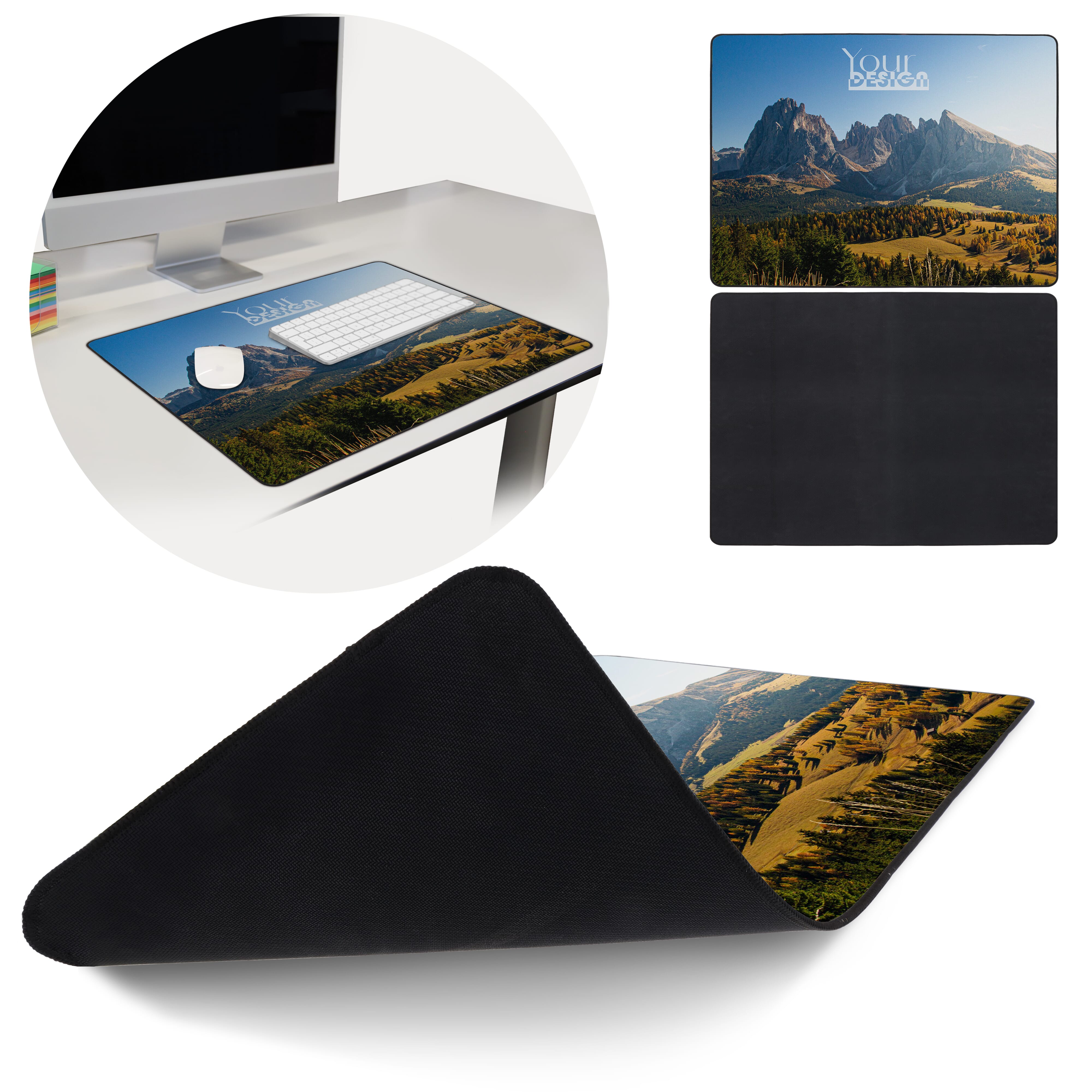 Diese DIN A2-Schreibtischunterlage hat die perfekte Größe, um Ihren Arbeitsbereich zu schützen und gleichzeitig eine bequeme Oberfläche für die täglichen Aufgaben zu bieten. Die strapazierfähige Gummibasis bietet einen festen, rutschfesten Halt und hält die Matte an ihrem Platz. Vollständig anpassbar mit farbenfrohen Sublimationsdruck.