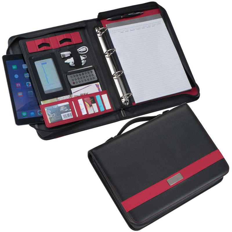 A4 Schreibmappe aus Kunstleder mit integrierter Powerbank