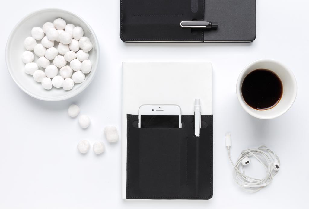 Deluxe Hardcover PU Notizbuch mit Handy- und Stiftehalter