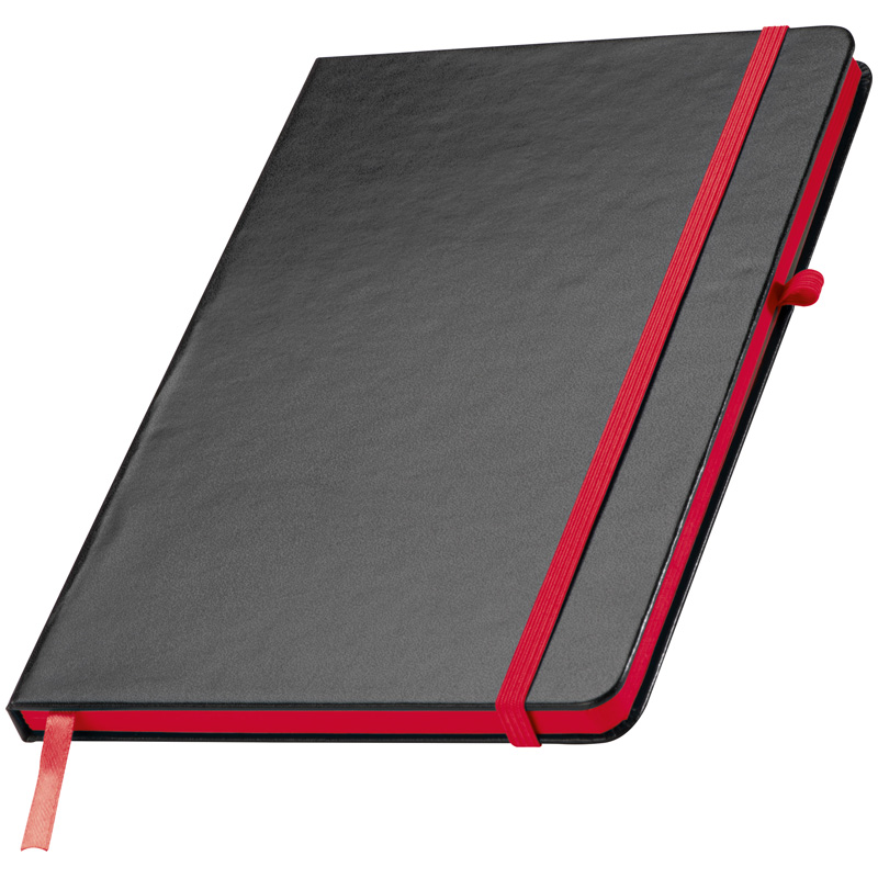A5 Notizbuch im PU-Einband, Kugelschreiberschlaufe, Gummiverschlussband, Lesezeichen und 160 linierten Seiten. Der Werbeaufdruck erfolgt mittig auf der Vorderseite.