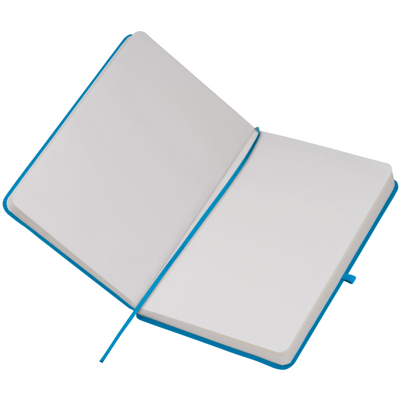 TOP PRICE! Notizbuch A5 im samtweichen PU-Einband, Kugelschreiberschlaufe, Lesezeichen, Gummiverschlussband und 160 Blankoseiten. Ihre Werbung drucken wir per Tampondruck auf das Cover.