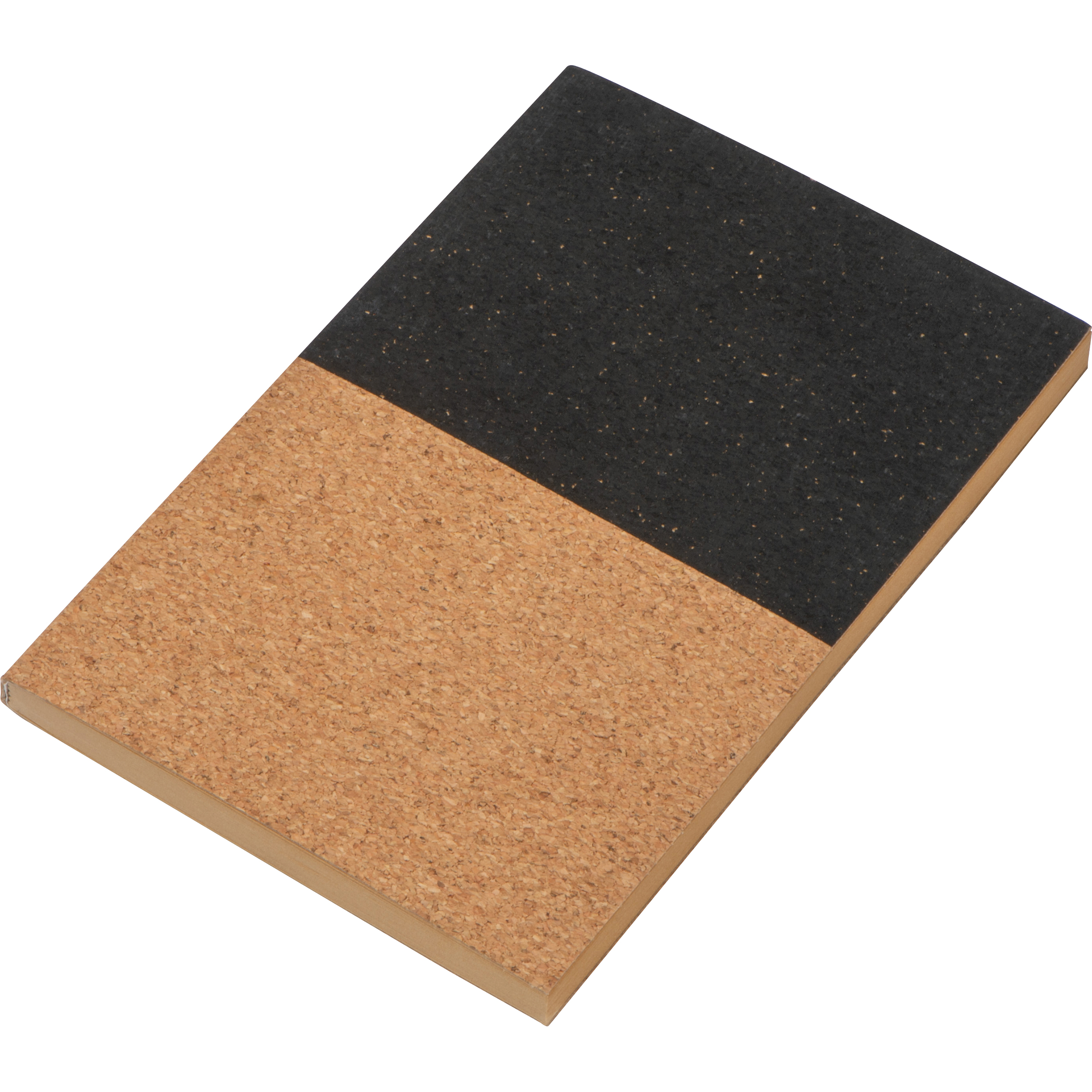 A5 Notizbuch mit Korkeinband und 160 gepunkteten Seiten aus Recyclingpapier. Ihre Werbung wird außen auf den Einband gedruckt.