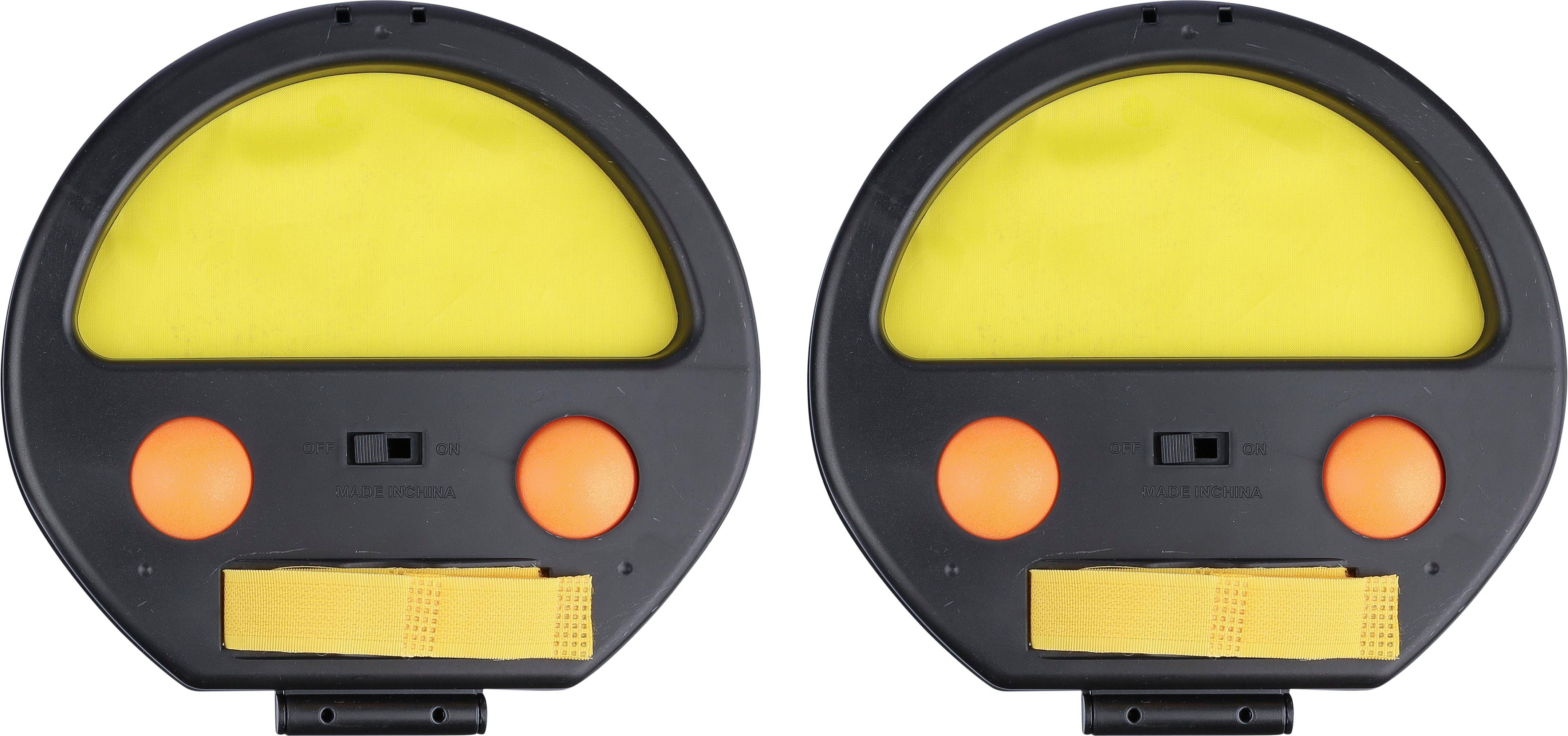 ABS-Fangballspiel mit zwei Haltern und zwei Fangbällen pro Halter. Mit Schnappverschluss am Griff, um die Halter geschlossen zu halten, und Klettverschlüssen auf beiden Seiten, um die Halter an den Händen zu befestigen. Einzeln verpackt in braunem Karton.