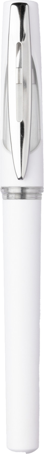 Gel-Tintenschreiber aus ABS mit Metallclip und ABS-Kappe. Die Kappe hat ein transparentes Fenster. Schwarze Tinte mit einer Schreiblänge von 400 m.