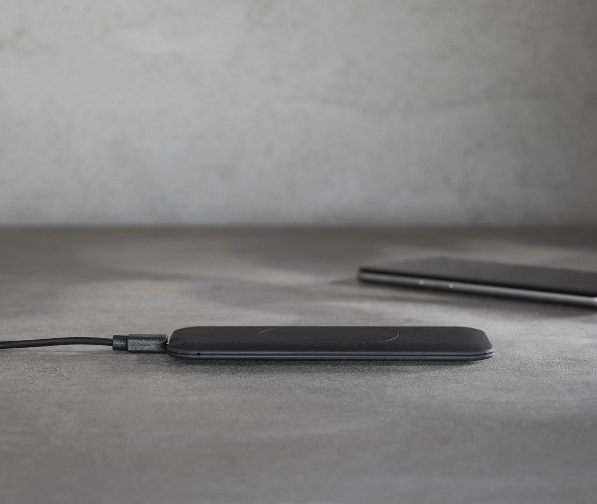 AIR 2 Wireless Charger 15W Ein Hauch von einem Wireless Charger! Diese drahtlose, Qi- zertifizierte, induktive Ladestation lädt Ihre Endgeräte nicht nur schnell mit bis zu 15 Watt; sie liegt mit nur 7 mm Dicke auch fast unsichtbar unter Ihrem Telefon. Und nicht zuletzt wegen ihrer samtweichen Softtouch-Oberfläche nimmt man sie gerne überall hin mit. Inklusive Ladekabel 250 mm (USB-Micro-USB) Input 5V/1.5A, 9V/2A, 12V/1,67A Output 9V/1.1A, 9V/1.67A Ladeeffizienz > 65 %; Ladeabstand < 6 mm Material: ABS mit Softtouch-Oberfläche Farbe: Schwarz Kunststofffreie Einzelverpackung Maße 126 x 65 x 7 mm Gewicht 43 g Werbeanbringung: Auf dem Körper, 40 x 20 mm, weiß oder silbern (D2/UV2/GP2) Vollflächig auf Anfrage (UV3) Innovativ, fortschrittlich und dieses Produkt unterstützt aktiv den Ausgleich der entstehenden CO2-Emissionen durch zertifizierte Klimaschutzprojekte.