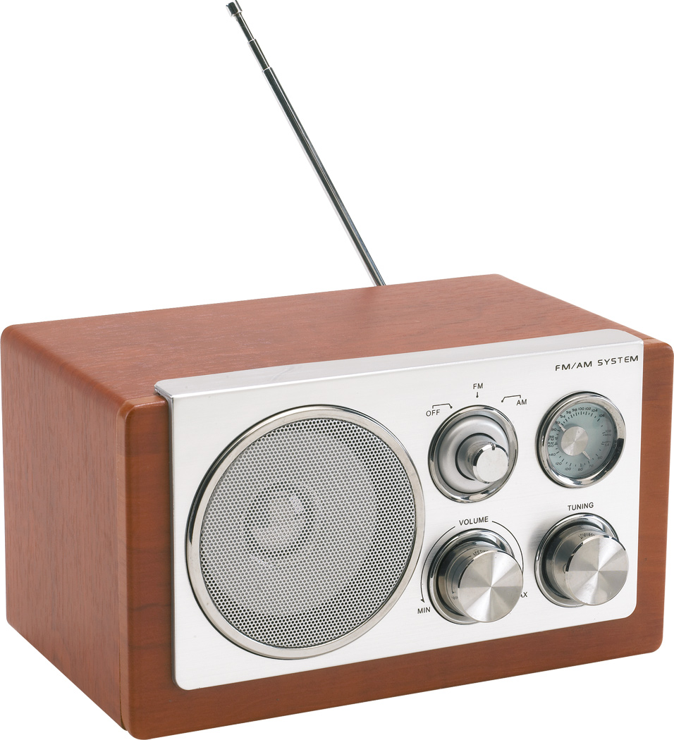 AM M-Radio CLASSIC: in edler Holz-Optik und Frequenzanzeige mit blauer Hintergrundbeleuchtung, mit Netzstecker, batteriebetrieben (4xAA Batterien nicht enthalten), in Box