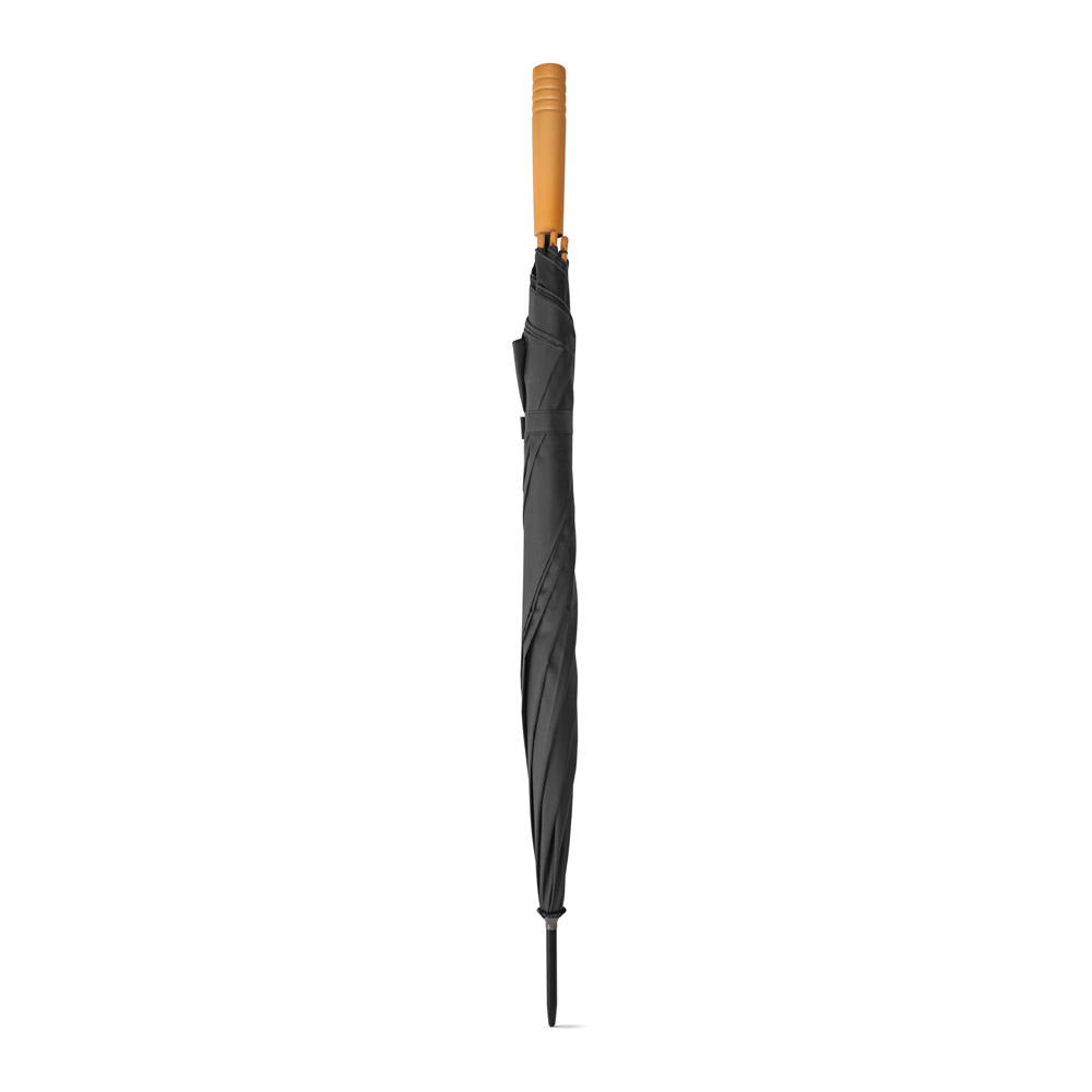 Regenschirm aus recyceltem Polyester (100% rPET) Pongé mit automatischer Öffnung, Metallstruktur und Holzgriff. ø1050 x 850 mm