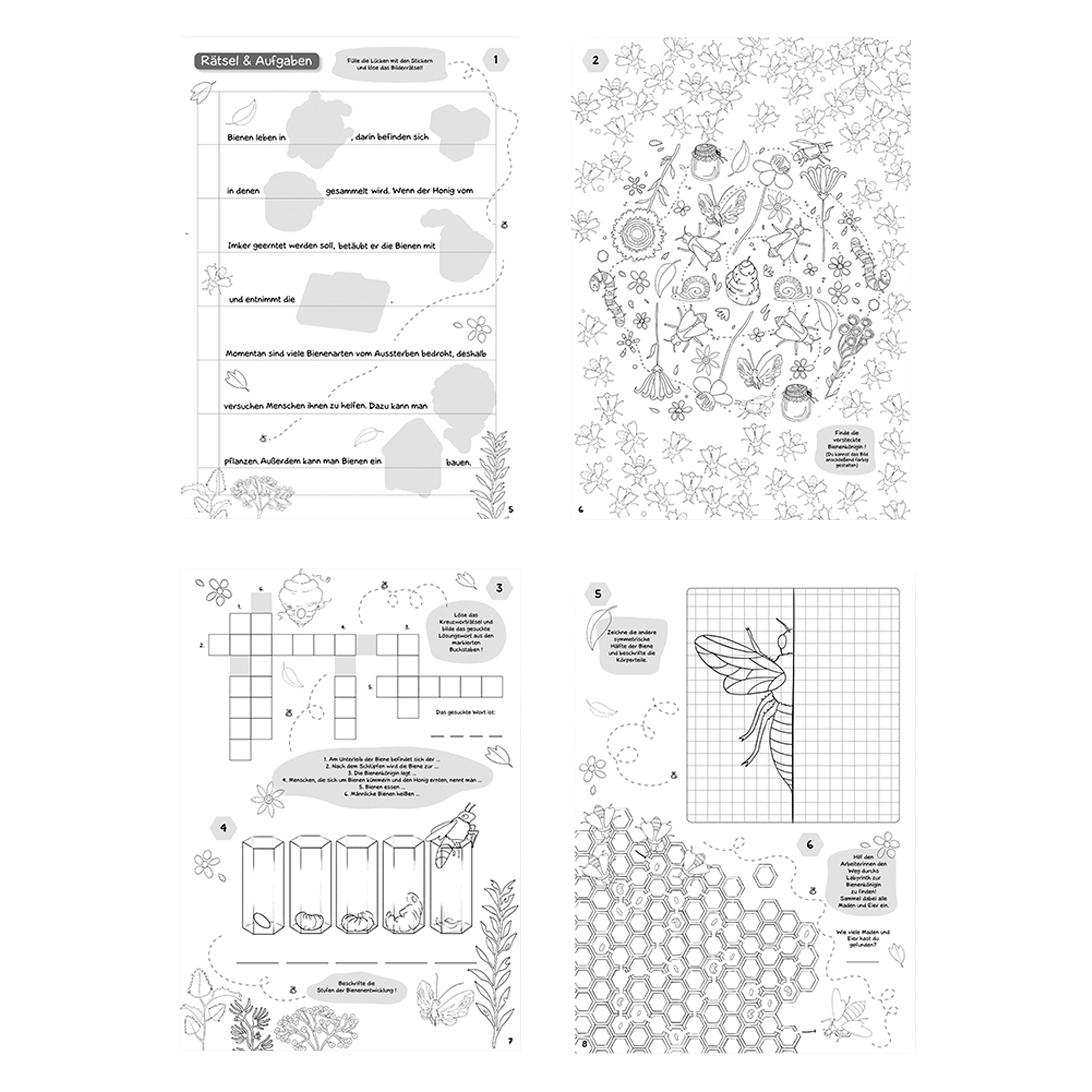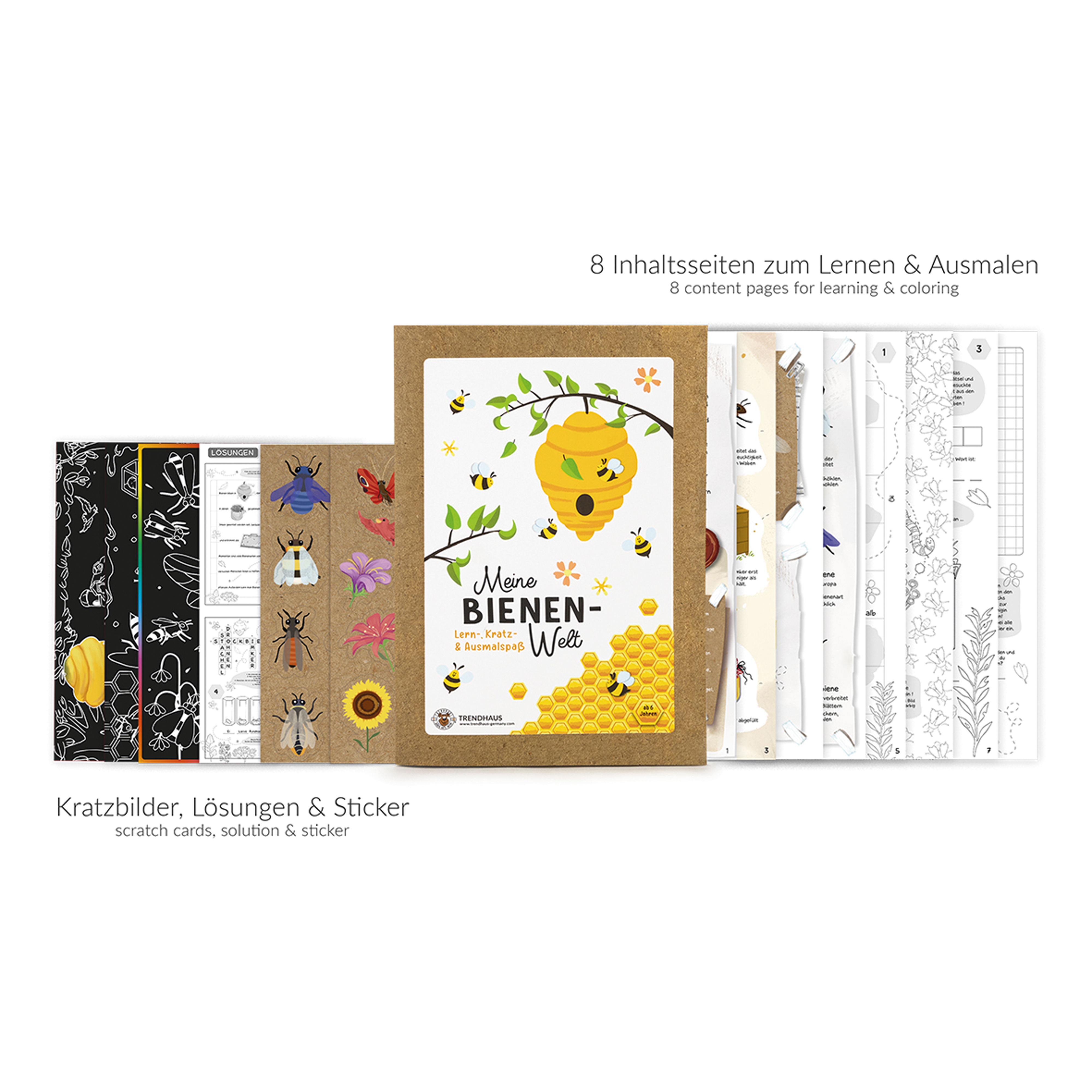 So macht Lernen richtig Spaß! Entdecke die Welt der Honigbienen und lerne ihre Besonderheiten kennen. Auf den Rätsel- und Spieleseiten kannst du dein gelerntes Wissen auf die Probe stellen und diverse Fragen hierzu beantworten. Mit dem beiliegenden Lösungsblatt kannst du deine Antworten anschließend kontrollieren. Dieses Activity-Heft im A4-Format enthält 4 Infoseiten mit vielen wissenswerten Infos und Fakten rund um Bienen. Auf weiteren 4 Seiten finden sich knifflige Rätsel- und Lernspiele wie Labyrinth, Kreuzworträtsel u. v.m. Außerdem beinhaltet dieses Heft 26 bunte Sticker und 3 kreative Kratz- und Ausmalseiten im A5-Format. Empfohlen für neugierige Kinder ab 6 Jahren.