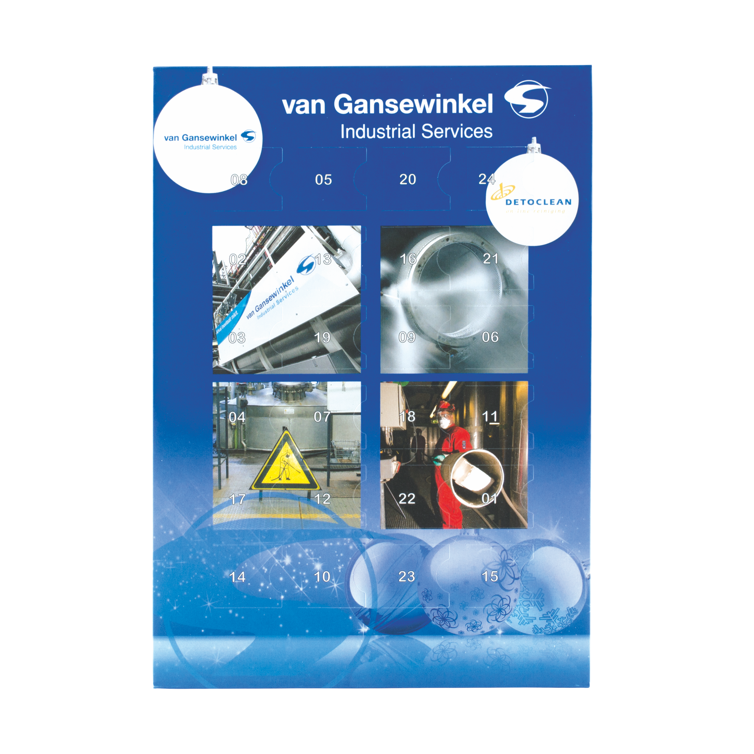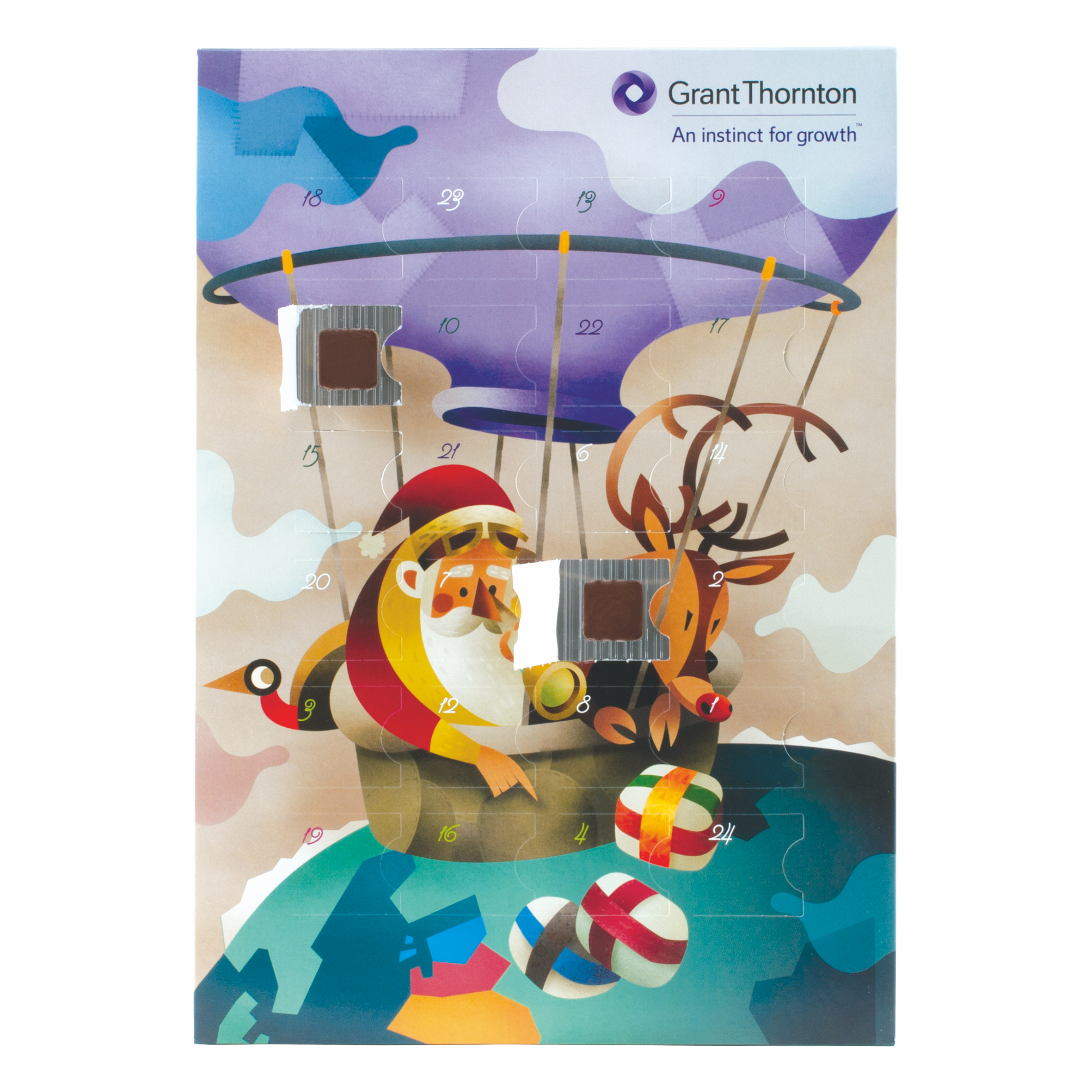 Adventskalender mit 24 x 2,5 gr. Schokolade, A4 60 gr. 4 Farbdruck, 295 x 210 x 14 mm. mit Callebaut Edel-Vollmilch