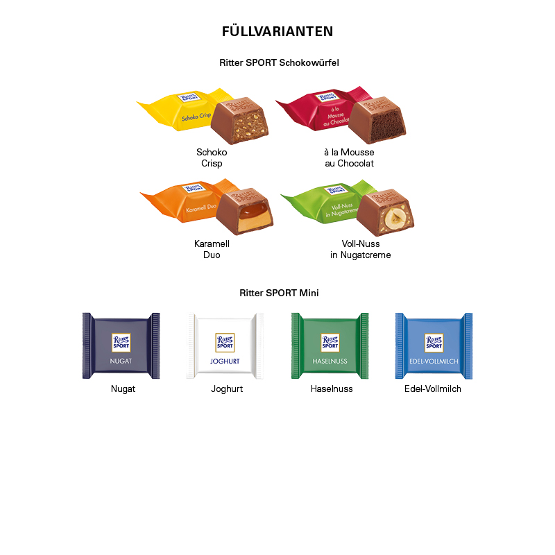 24 Ritter SPORT Schokowürfel, 4 Sorten oder 24 Ritter SPORT mini, 4 Sorten