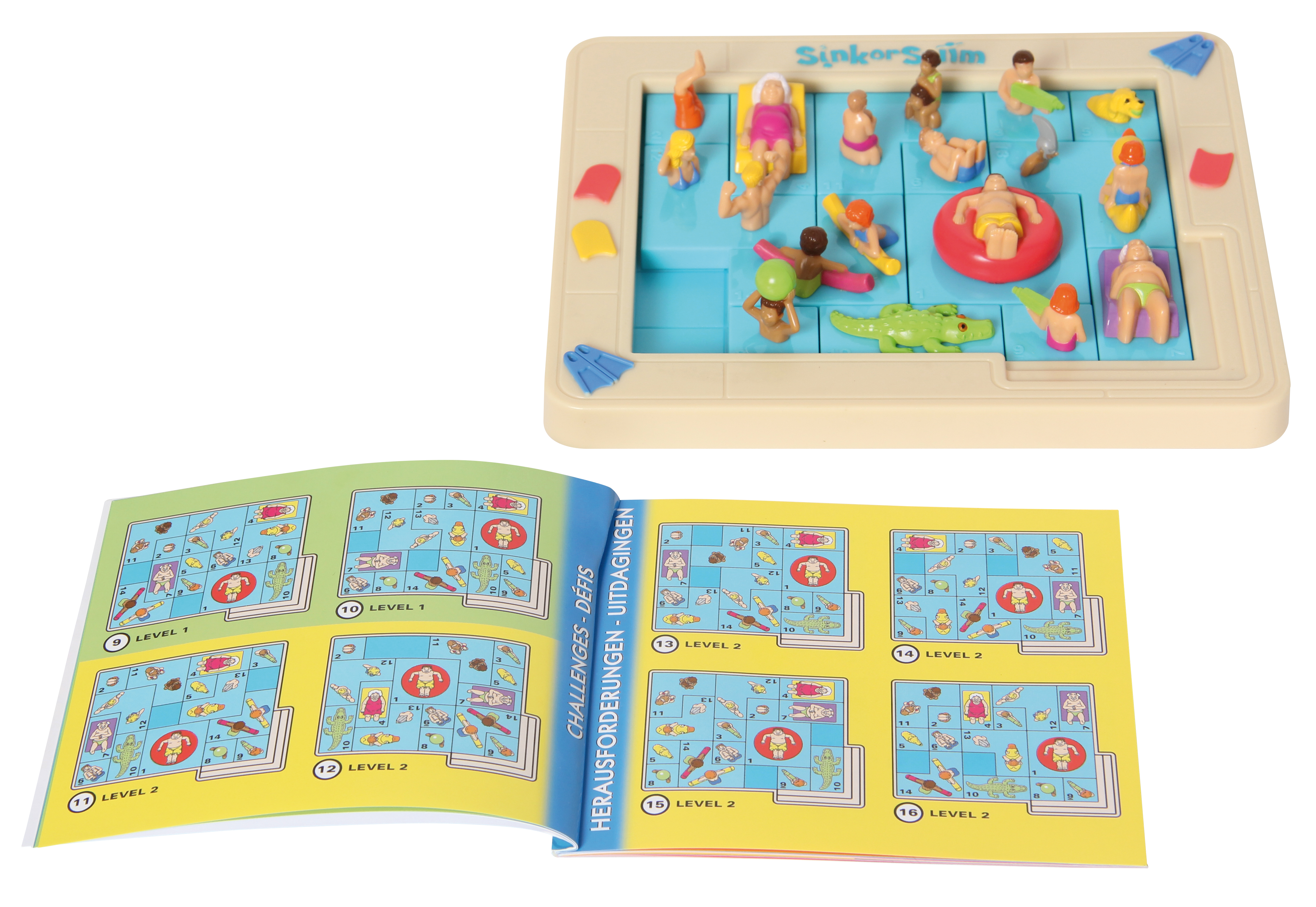 Willkommen bei Sink or Swim, der erfrischenden Abkühlung für Ihr Gehirn! Das Ziel: Schieben Sie den Jungen im roten Reifen zur Treppe in der rechten unteren Ecke des Pools. Dazu müssen Sie mehrere oder alle anderen Teile, die Ihnen den Weg versperren, verschieben. Die ultimative Pool-Party! Worauf warten Sie? Tauchen Sie ein! Mit 50 Aufgaben, ab 8 Jahren.