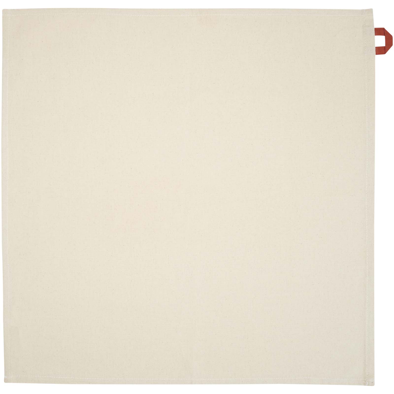 Küchentuch aus 100 % GRS-zertifizierter Recyclingbaumwolle mit einem Gewicht von 200 g / m² und einer auffälligen, kontrastfarbigen Schleife. Größe des Handtuchs: 50 x 50 cm.