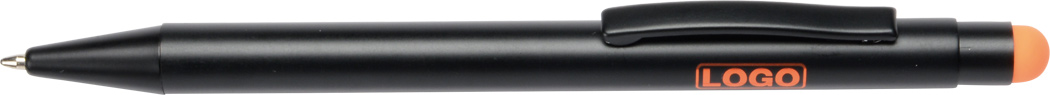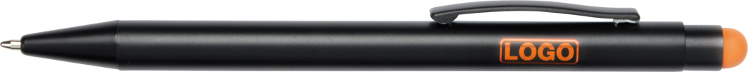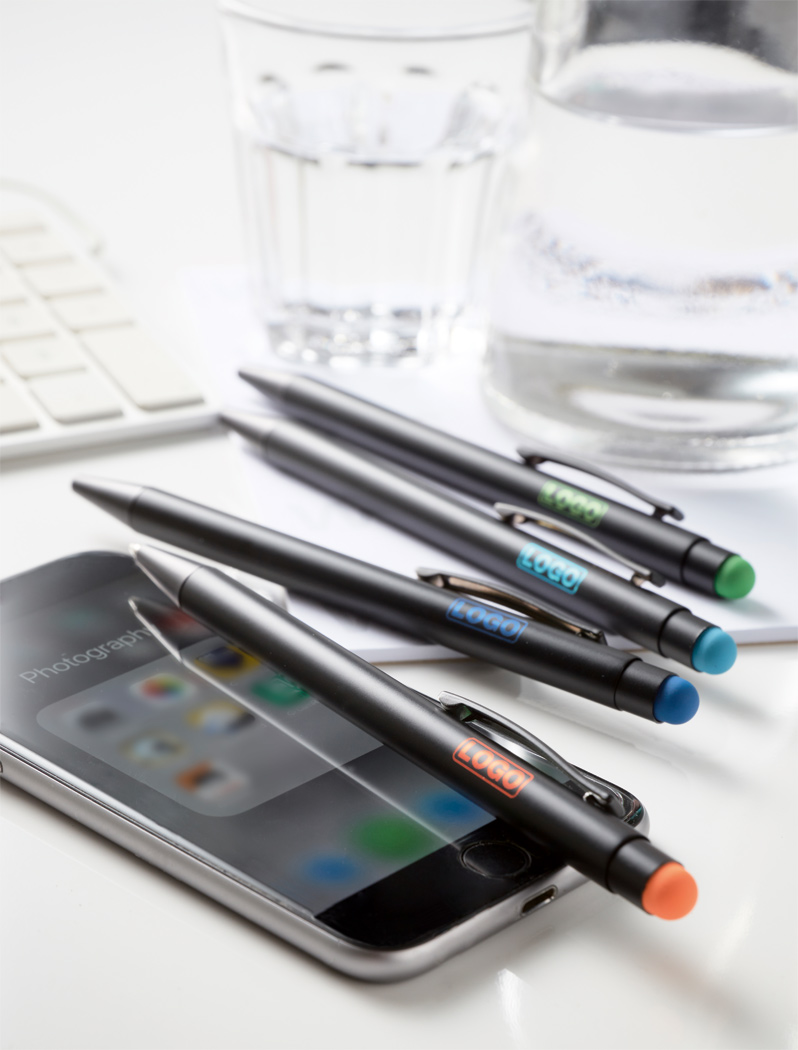 Alu-Kugelschreiber BLACK BEAUTY, mit Großraummine, Touchscreen-Spitze zur Bedienung von Smartphones und Tablets, matte Oberfläche mit farbiger Unterlegung für eine Gravur passend zur Farbe der Touchscreen-Spitze, blauschreibend