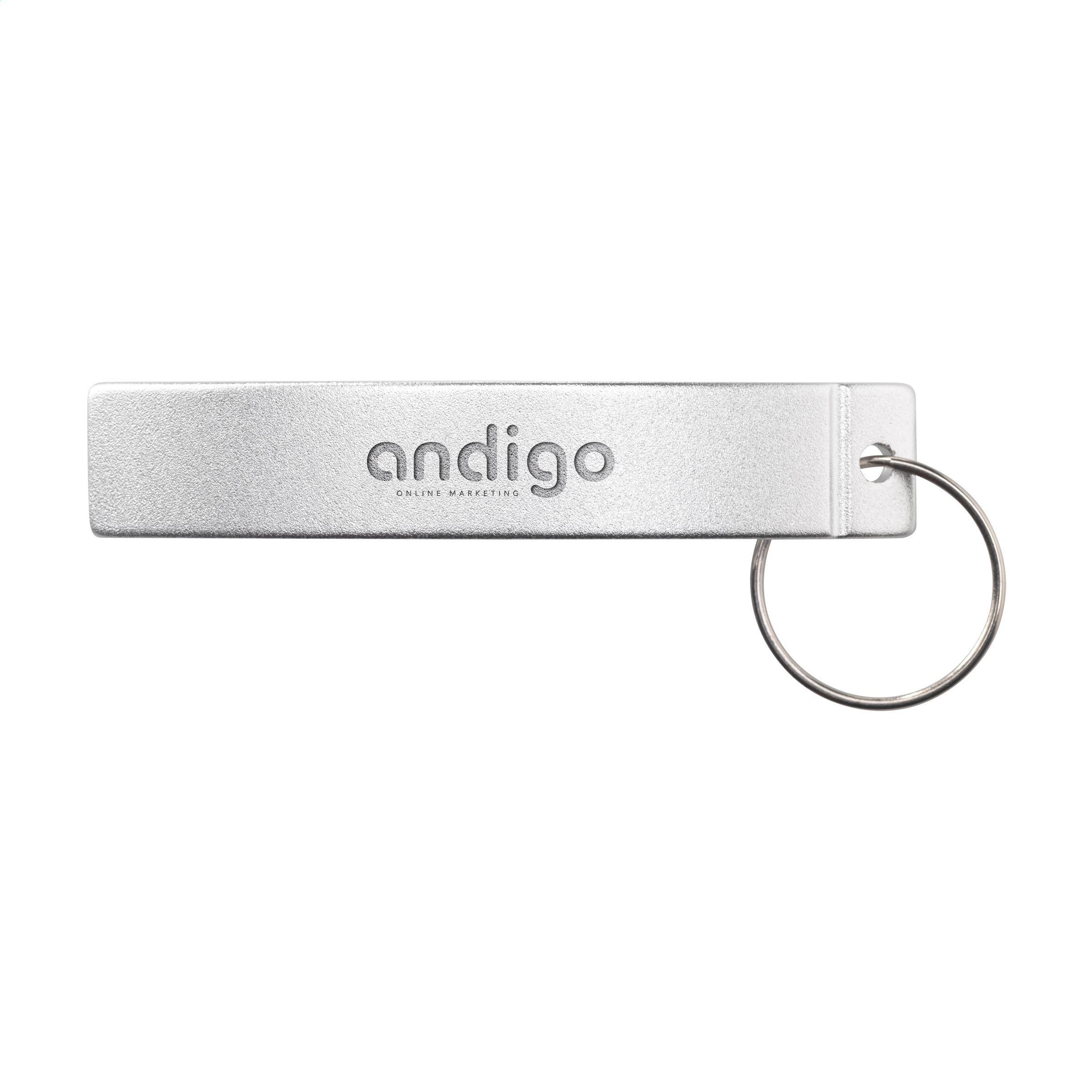 Schlüsselanhänger mit leichtem Flaschenöffner aus 100% recyceltem Aluminium. GRS-zertifiziert. Durch die Verwendung von recyceltem Aluminium kommt eine geringere Menge an neuen Rohstoffen zum Einsatz. Das bedeutet weniger Energieverbrauch und weniger Wasserverbrauch.