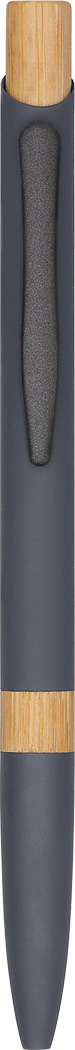 Aluminium-Kugelschreiber BAMBOO SYMPHONY: mit mattem Schaft aus recyceltem Aluminium, Ring in Griffzone und Drücker aus Bambus, Druckmechanismus, Großraummine, blauschreibend