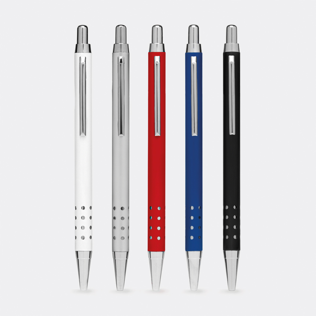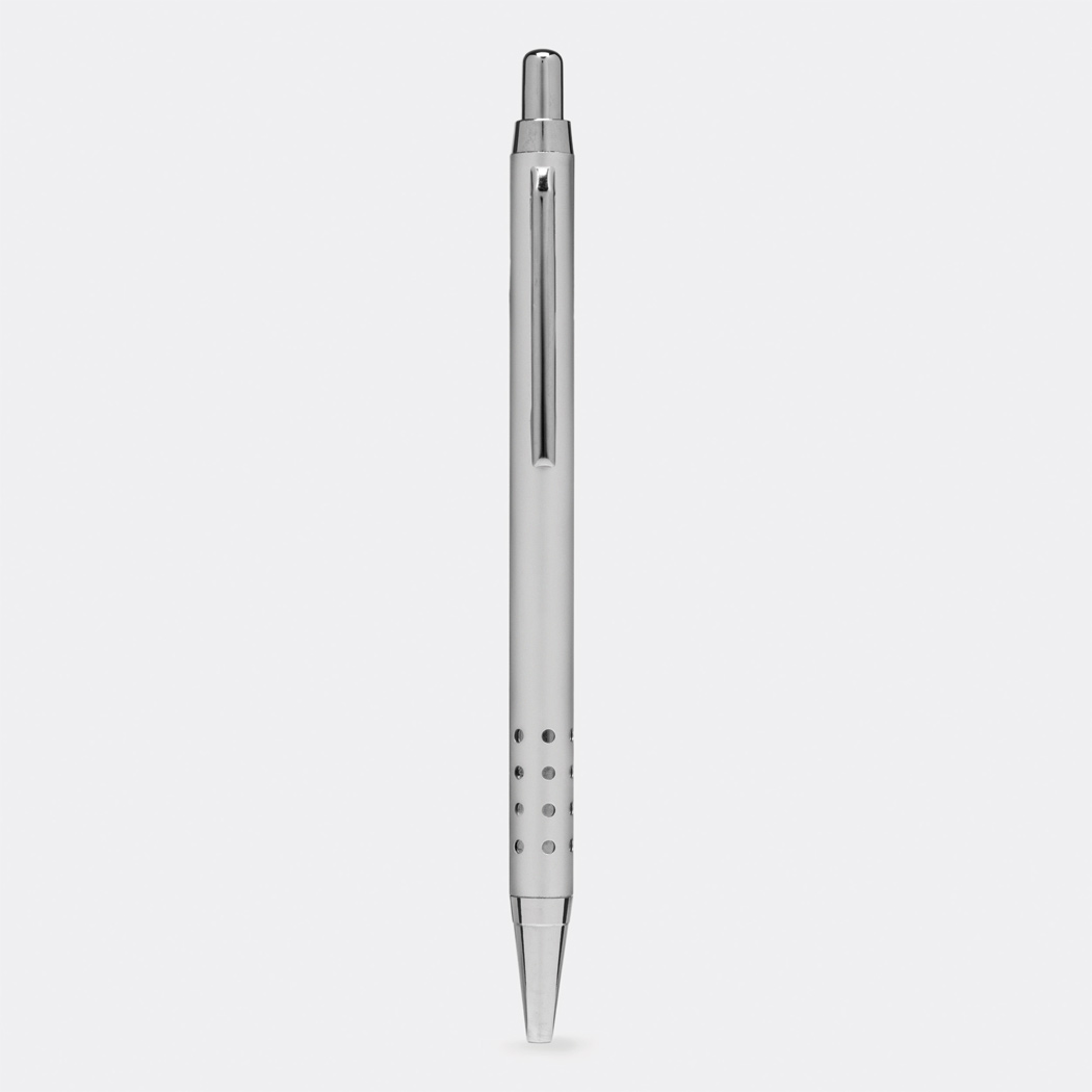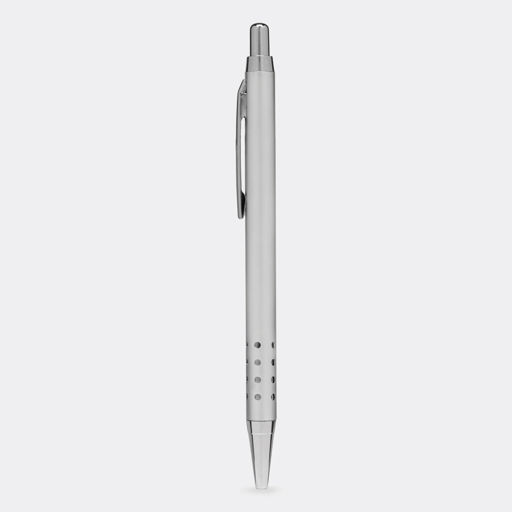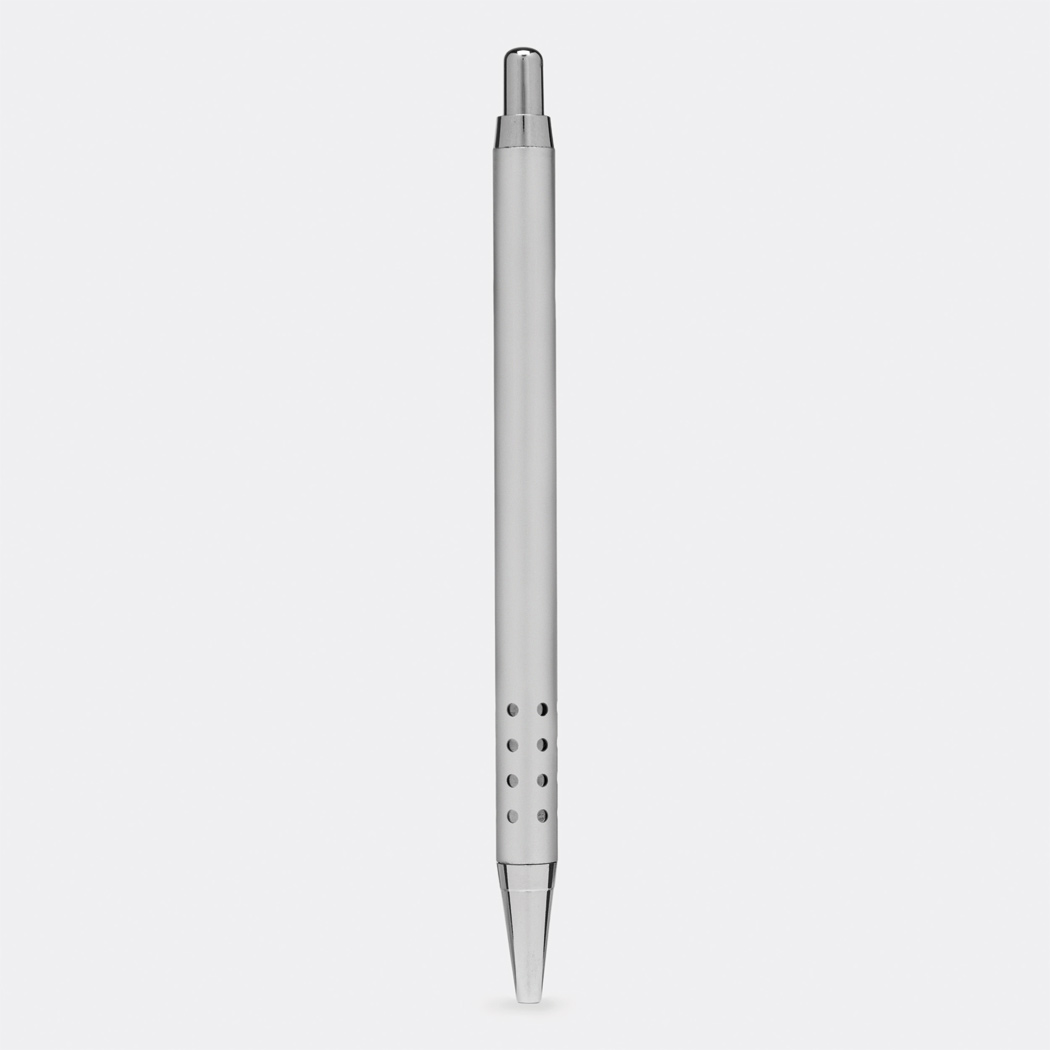 Aluminium-Kugelschreiber BUKAREST: Schaft mit Loch-Design, Druckmechanismus, Großraummine, blauschreibend