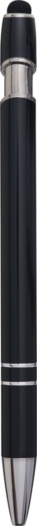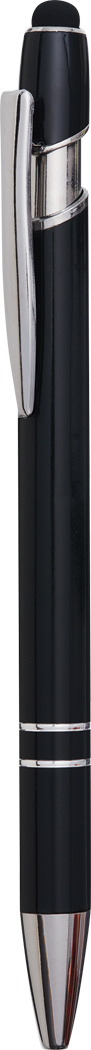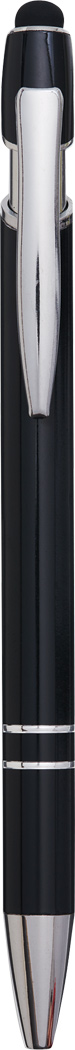 Aluminium-Kugelschreiber MERCHANT: mit glänzendem Aluminium-Schaft, Druckmechanismus, am Schaftende mit Touchscreen-Spitze, blauschreibend