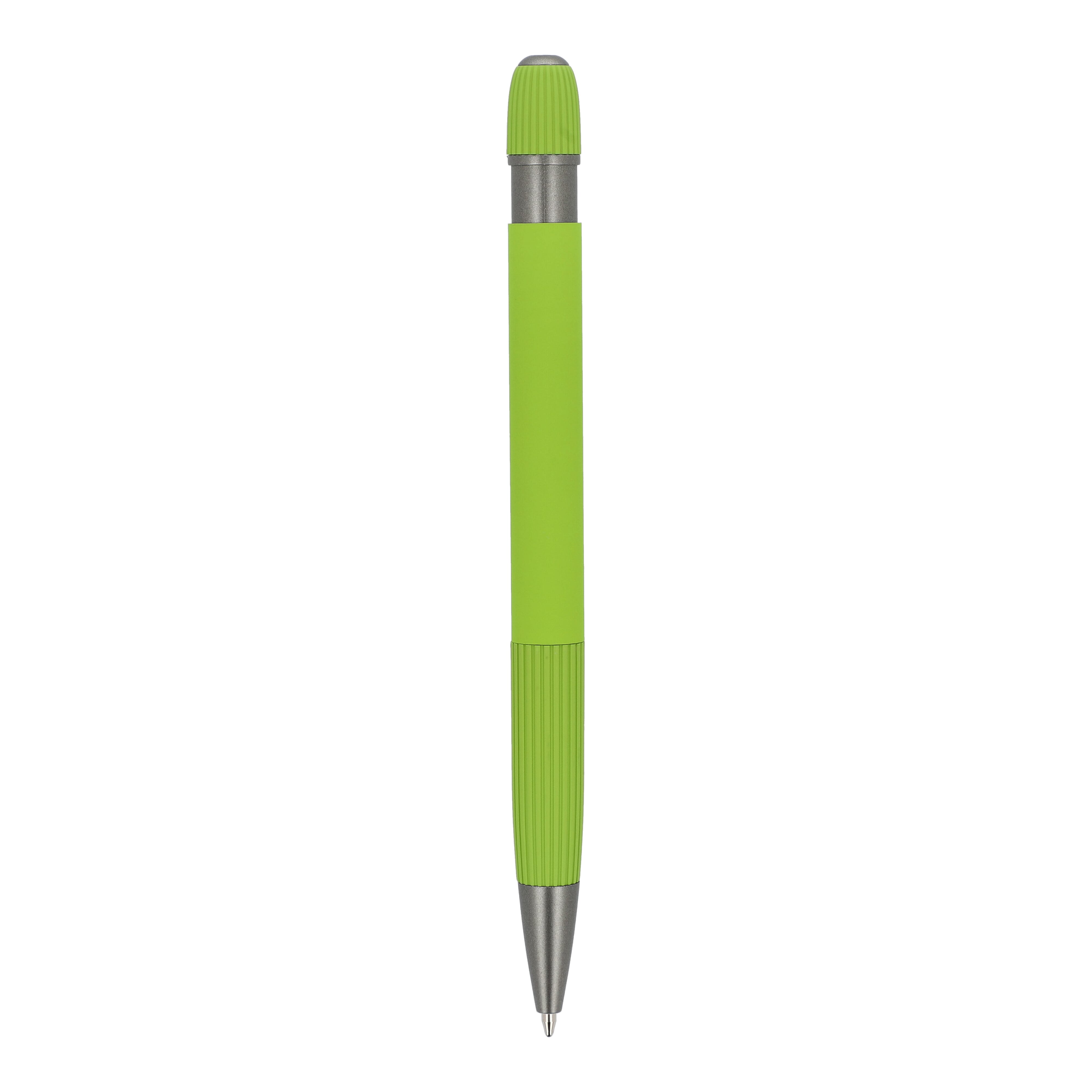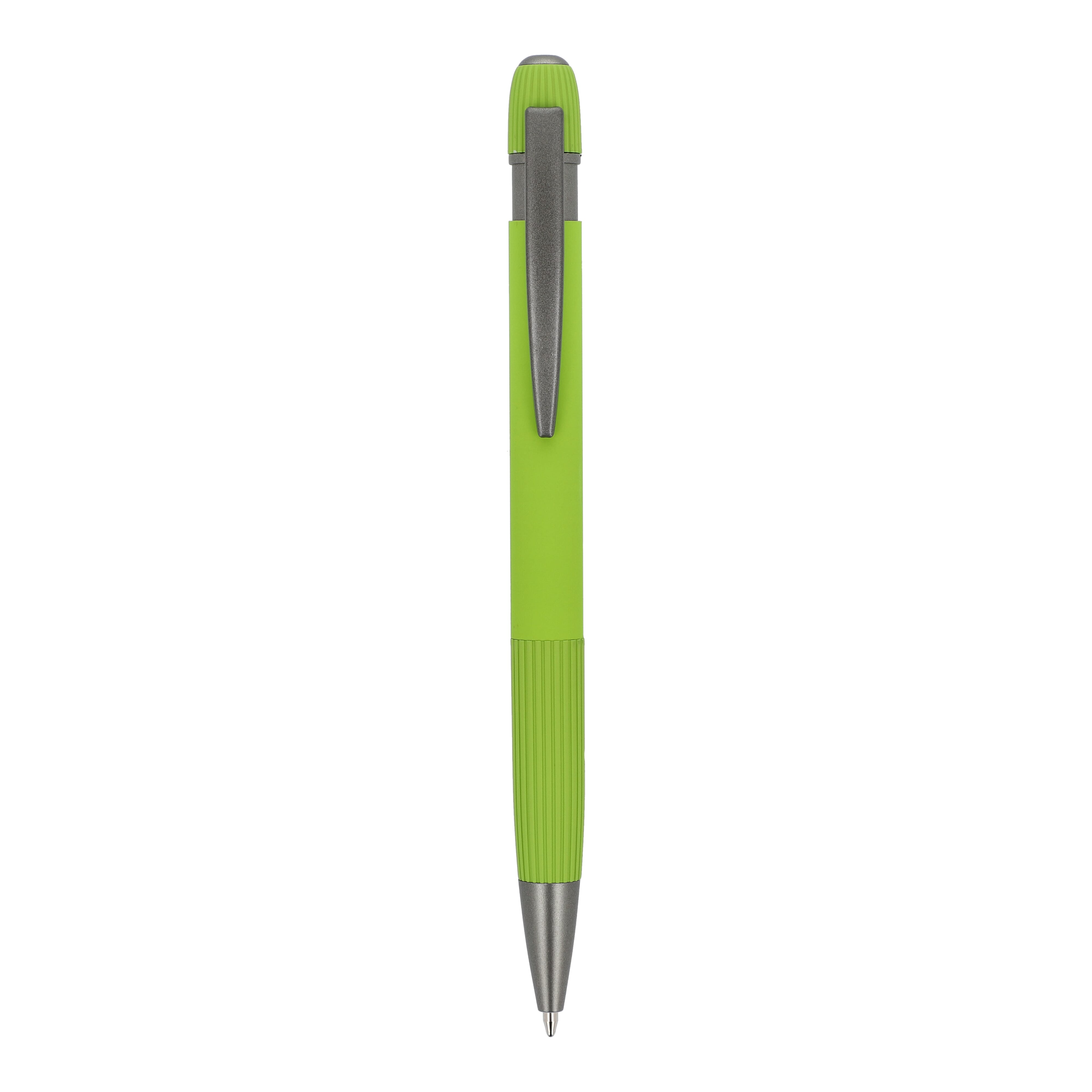 Eleganter Aluminium-Kugelschreiber mit Metallclip. Mit beliebten vertikalen Streifen auf dem Schaft und dem Druckknopf. Der Stift wird mit blauer Tinte geliefert.