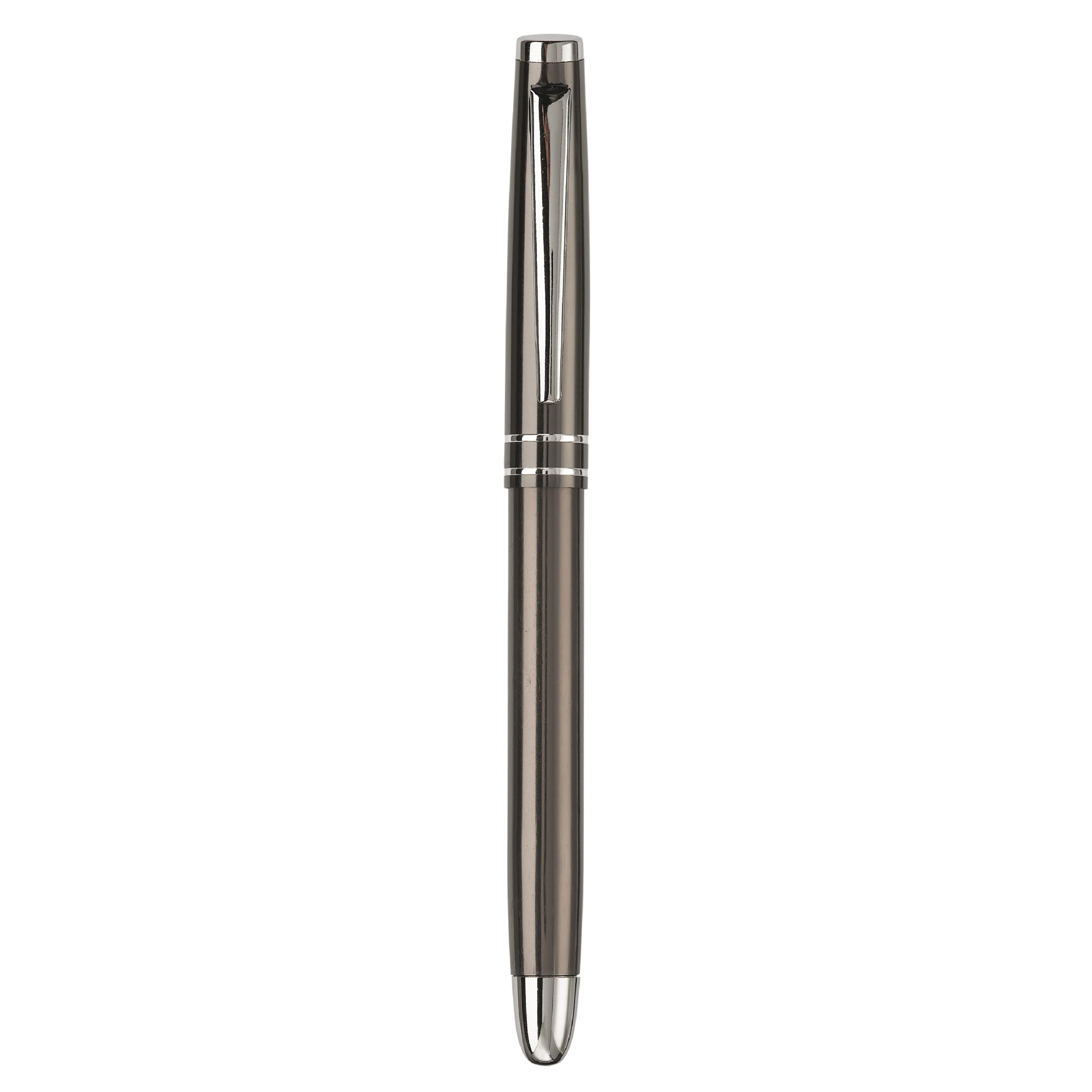 Aluminium Rollerball mit eleganter Kappe und zwei Ringen. Blauschreibend.