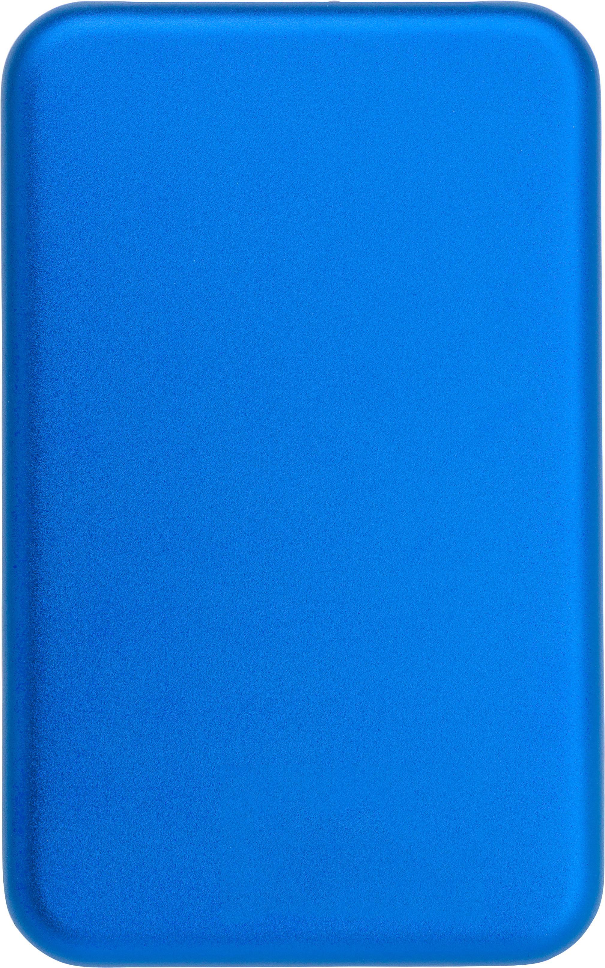 Solarstrom-Powerbank aus Aluminium mit blauen Kontrollleuchten. USB- und USB-C-Anschluss. Eingang DC5V/1A. Ausgang 5V/1A. Kapazität: 4.000mAh. Inklusive USB-Kabel.