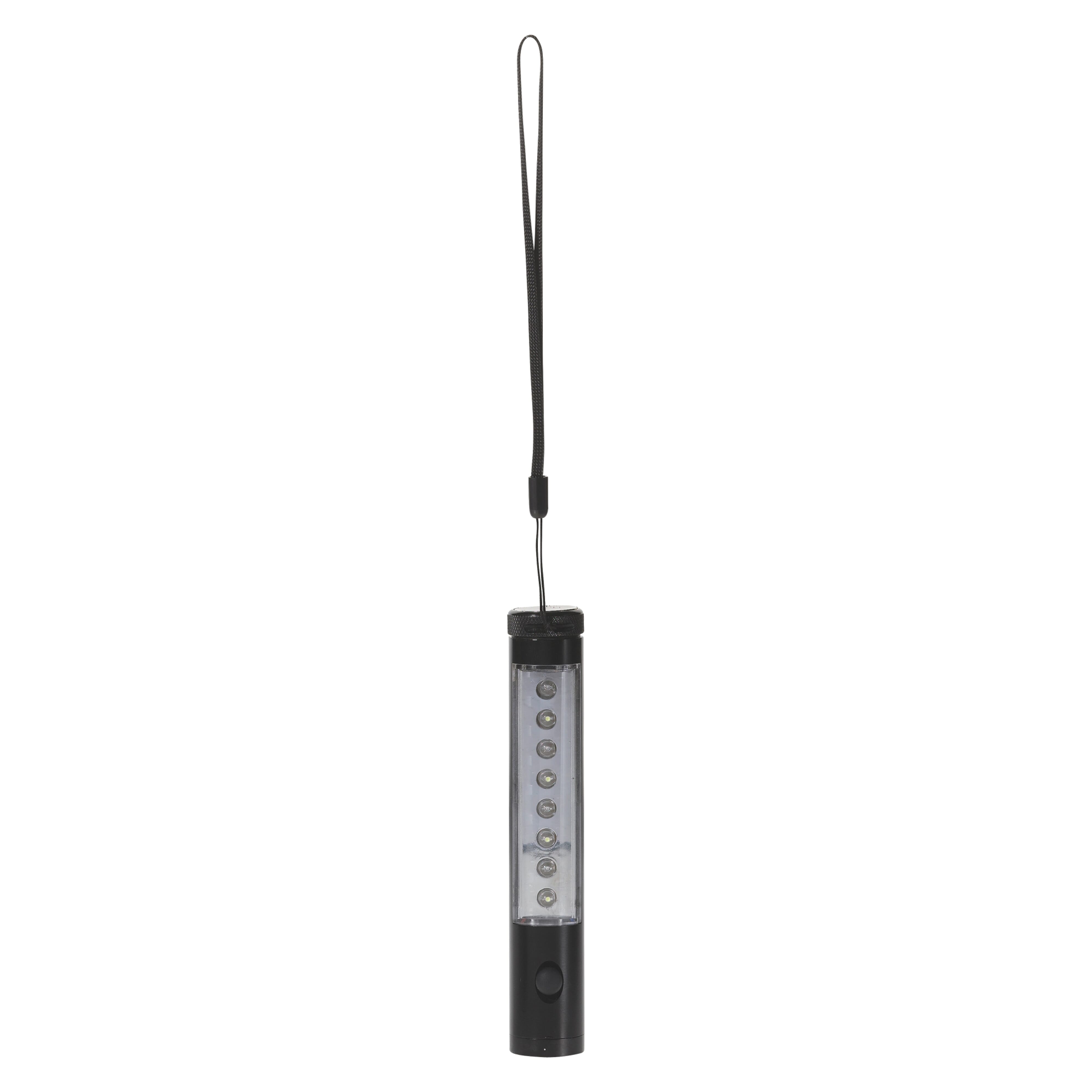 LED-Taschenlampe aus Aluminium mit je einer Lampe auf der Vorder- und Oberseite. Blitz- und statisches Licht sind möglich. Auf der Rückseite sind Magneten für einen sicheren Halt angebracht. Lieferung in einer Geschenkverpackung mit Batterien und einer Handschlaufe.