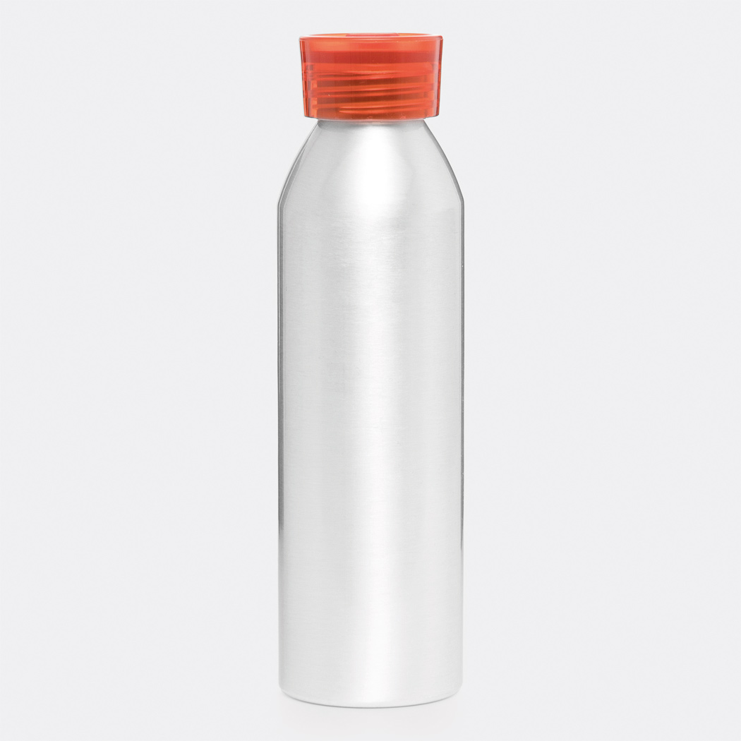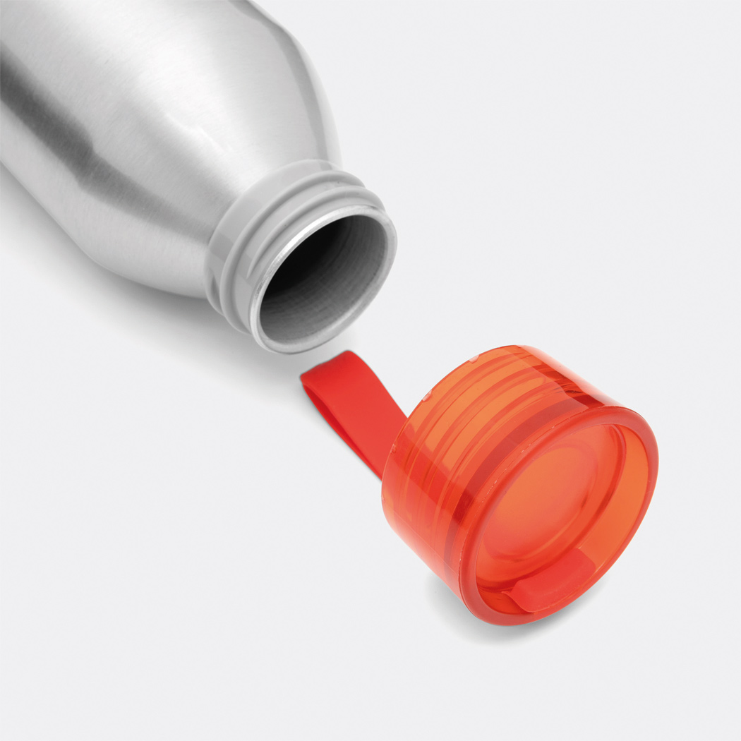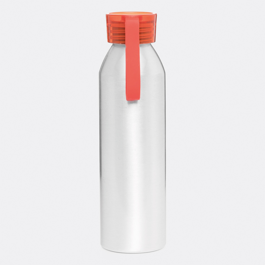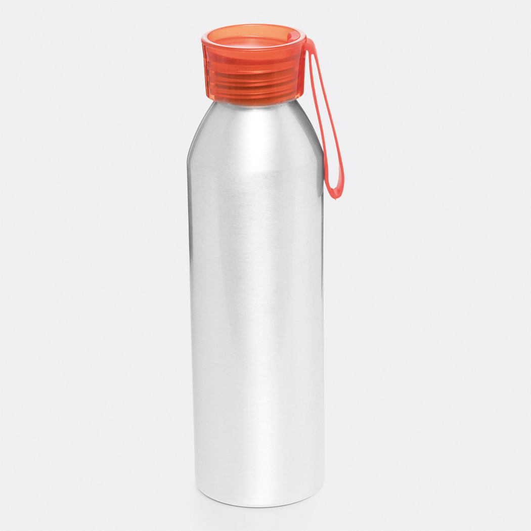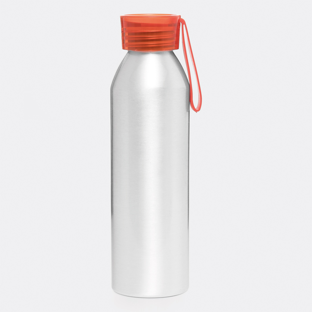 Aluminium Trinkflasche COLOURED, einwandig: farbiger Kunststoffdeckel mit Schraubverschluss, Silikonschlaufe, Füllmenge ca. 650 ml.