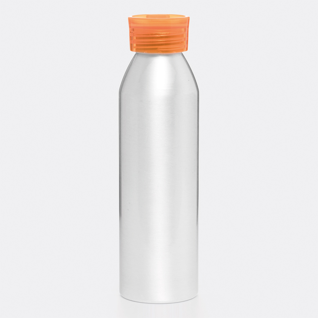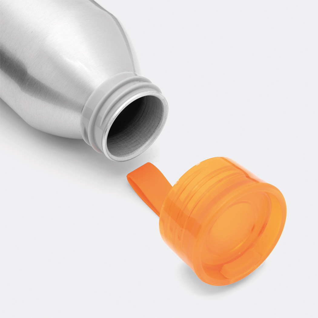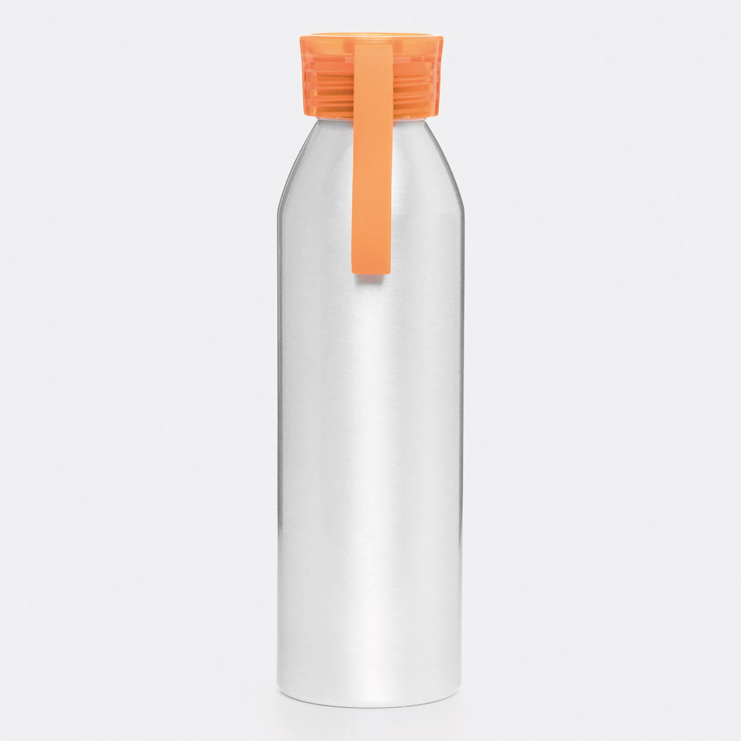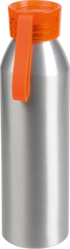 Aluminium Trinkflasche COLOURED, einwandig: farbiger Kunststoffdeckel mit Schraubverschluss, Silikonschlaufe, Füllmenge ca. 650 ml.