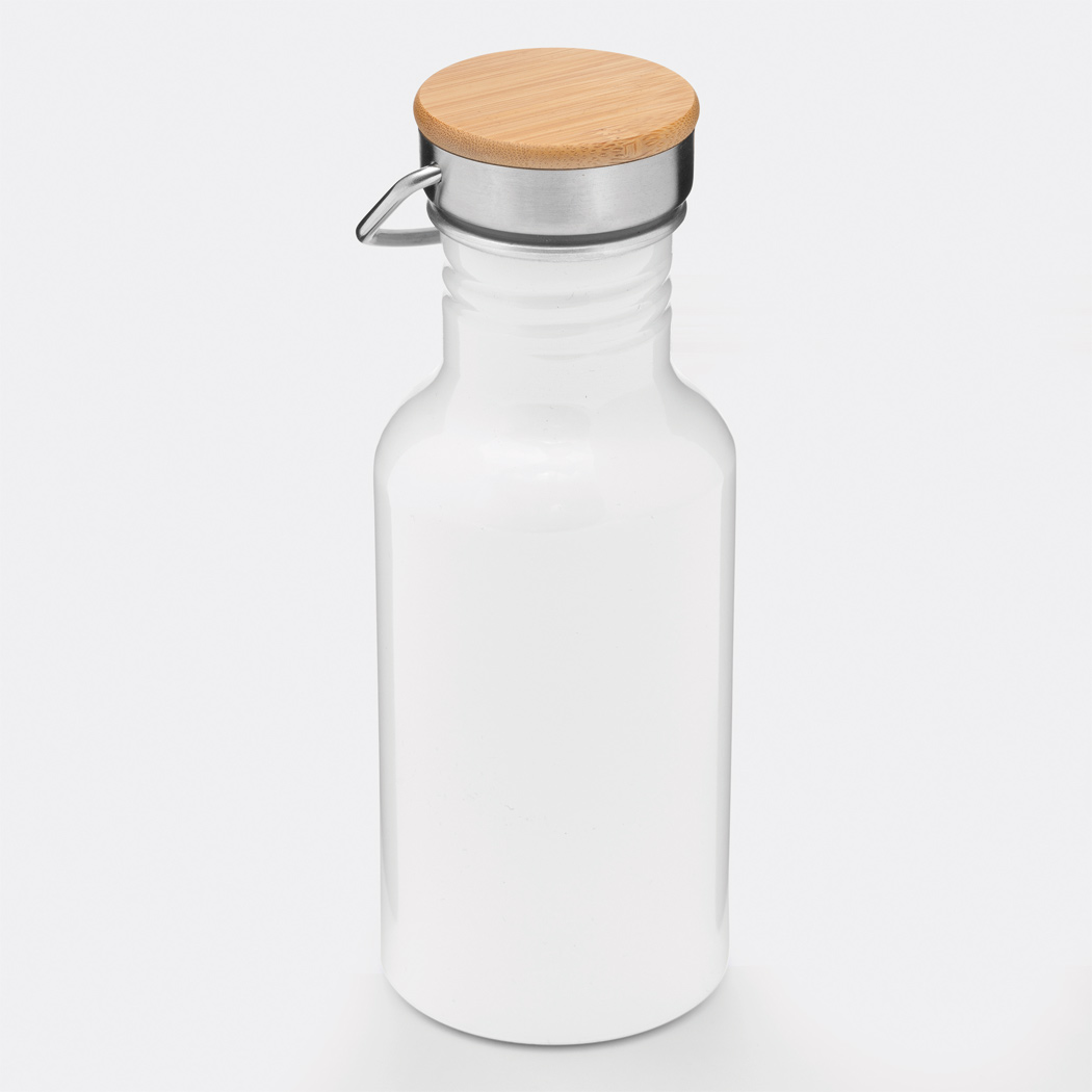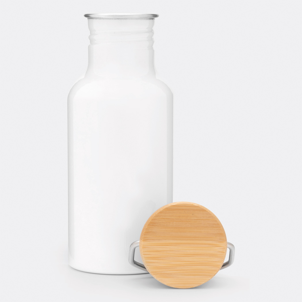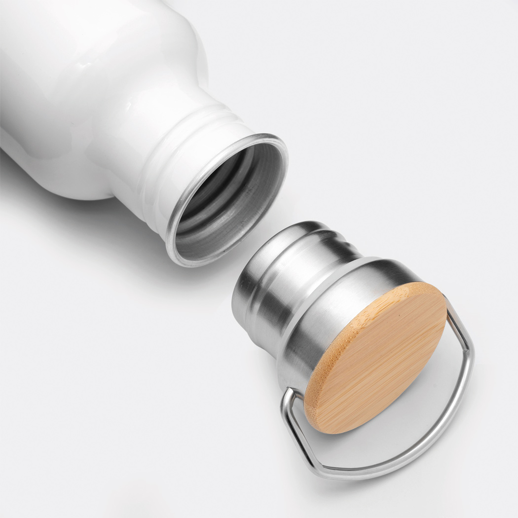 Aluminium Trinkflasche ECO TRANSIT: einwandig, Bambus-Deckel mit sicherem Schraubverschluss und Tragegriff, Füllmenge: ca. 550 ml