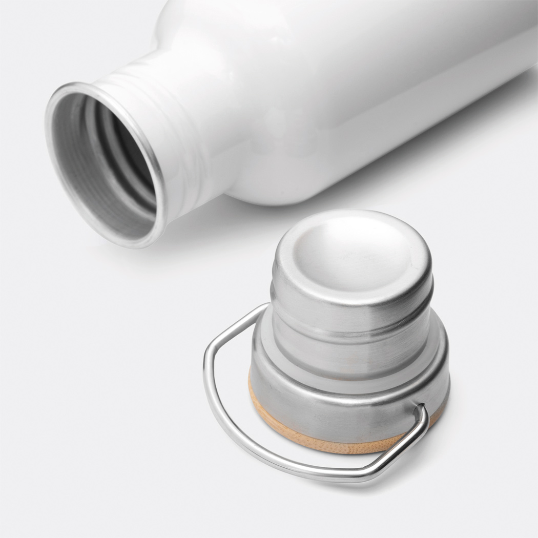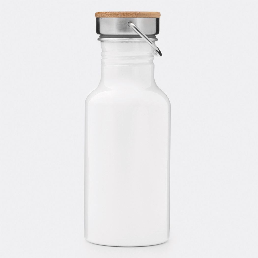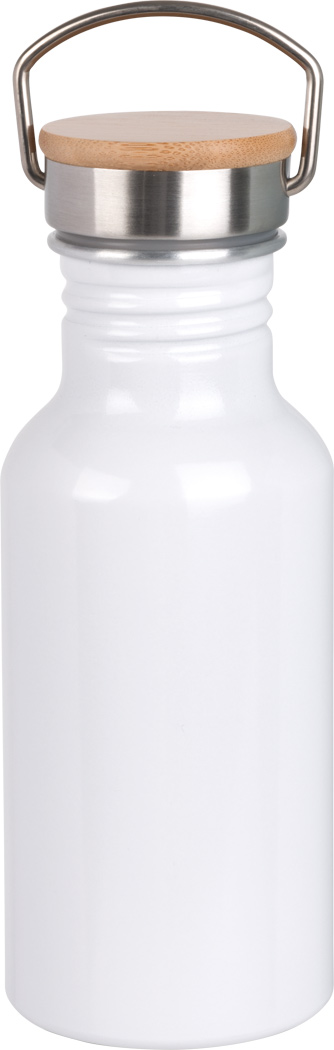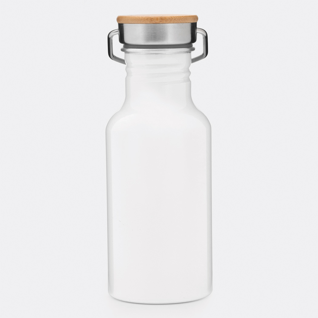 Aluminium Trinkflasche ECO TRANSIT: einwandig, Bambus-Deckel mit sicherem Schraubverschluss und Tragegriff, Füllmenge: ca. 550 ml