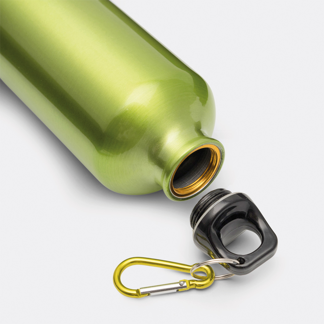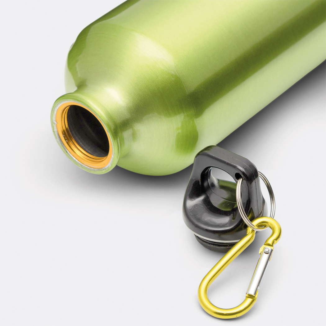 Aluminium-Trinkflasche TRANSIT: Kunststoffverschluss mit farblich abgestimmtem Karabinerhaken (der Karabiner ist NICHT als Sicherung beim Klettern geeignet), Füllmenge ca. 400 ml